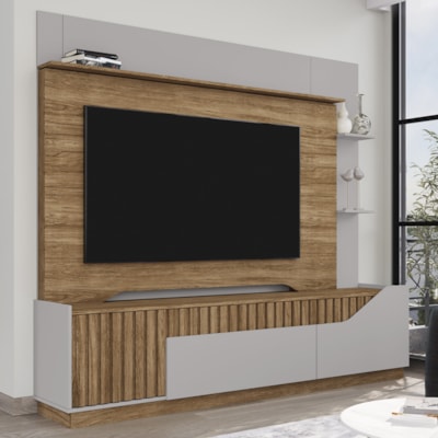 Estante Painel Para TV 75 Pol 210cm Shay Naturalle/Off B02 - Mpozenato