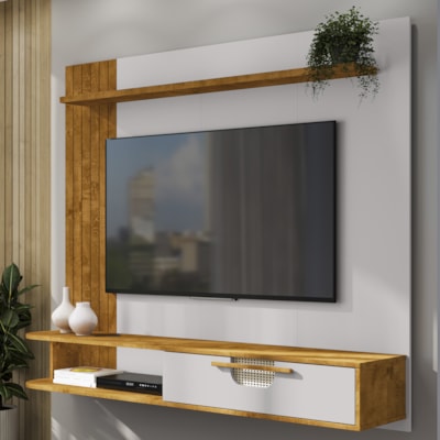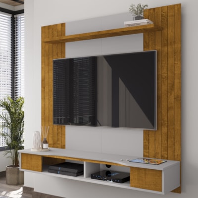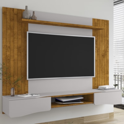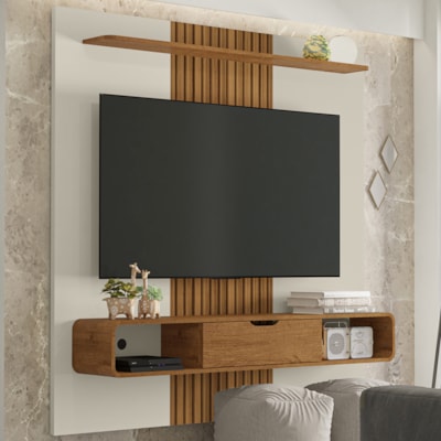 Painel TV 65 Pol Bancada Suspensa 160cm Âmbar Off/Naturalle - Bechara