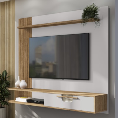 Painel TV 65 Pol e Bancada Suspensa 161cm Malu Naturalle/Off B02 - Mpozenato