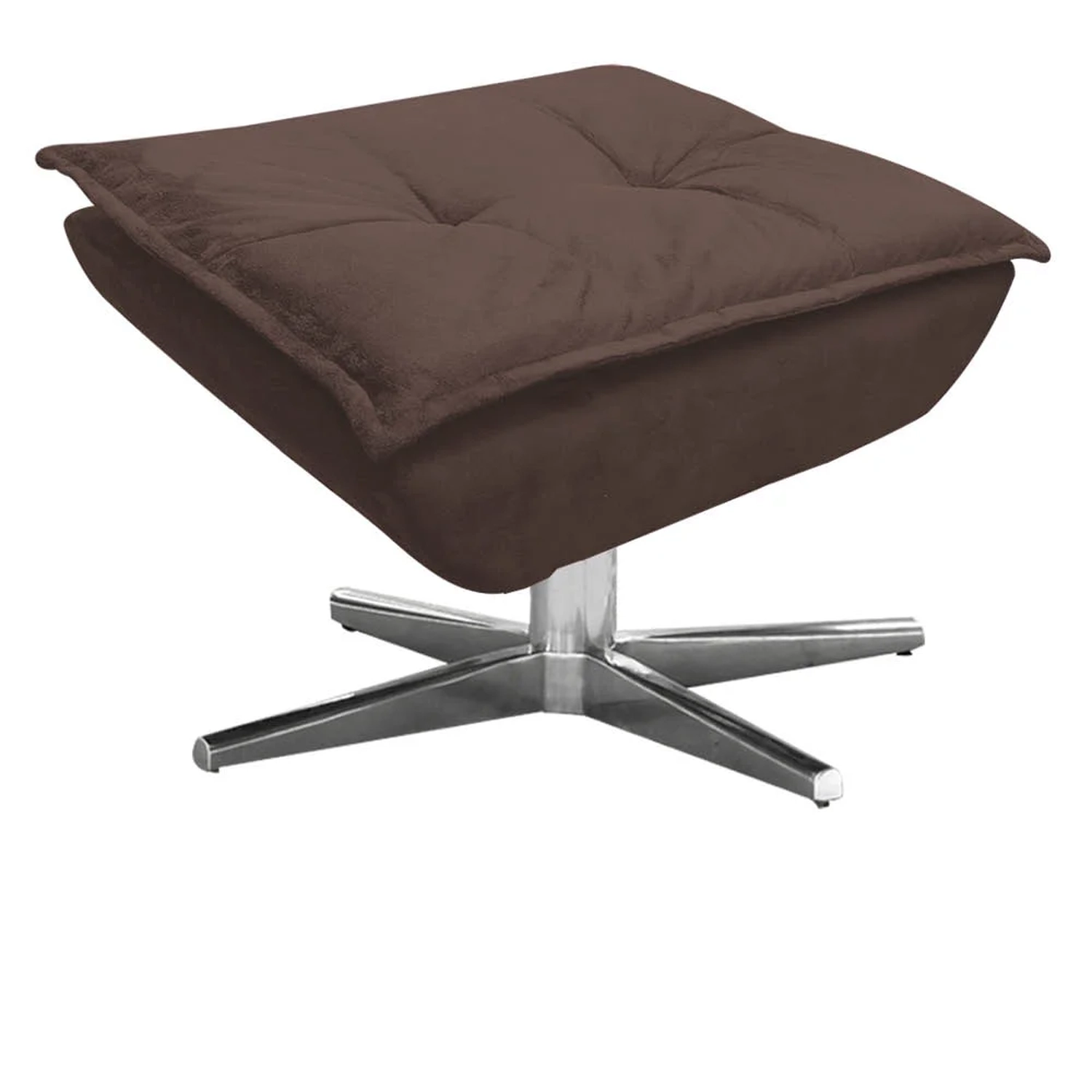 Puff Decorativo Sala de Estar Base Giratória Cromada Opla Suede Marrom - Ibiza 79082