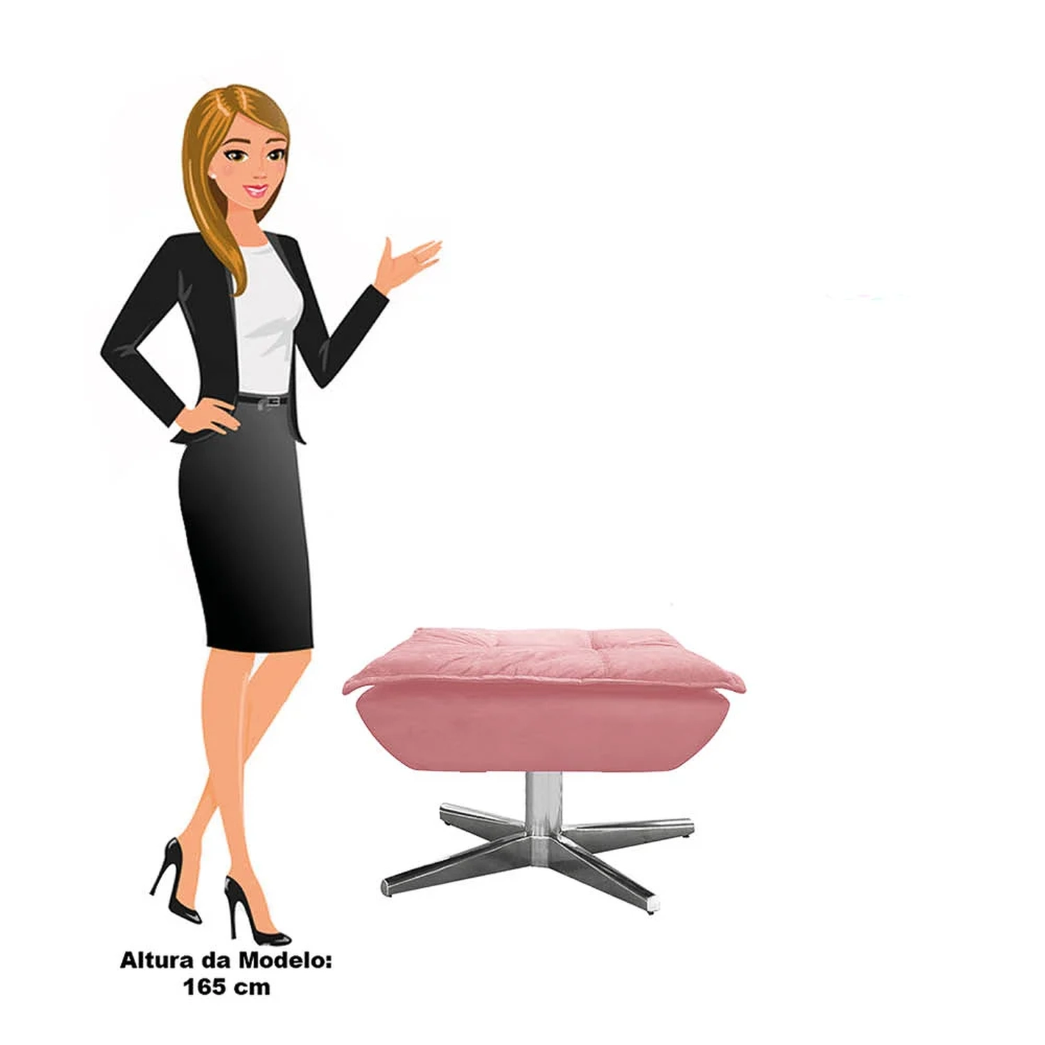 Puff Decorativo Sala de Estar Base Giratória Cromada Opla Suede Rose - Ibiza 79084