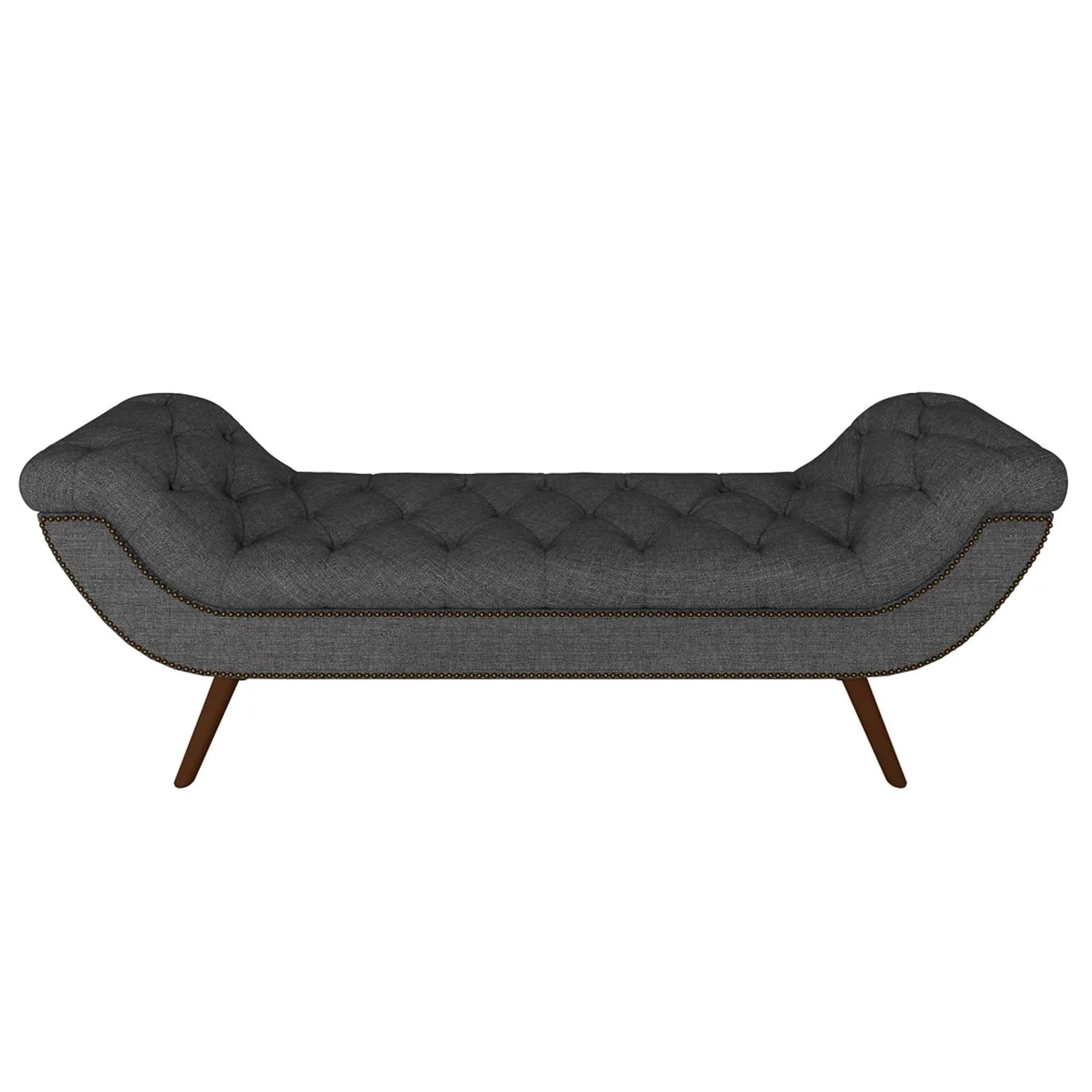 Puff Recamier Calçadeira 140cm Pés Palito Madeira Vêneto Z37 Linho Chumbo - Mpozenato 81905