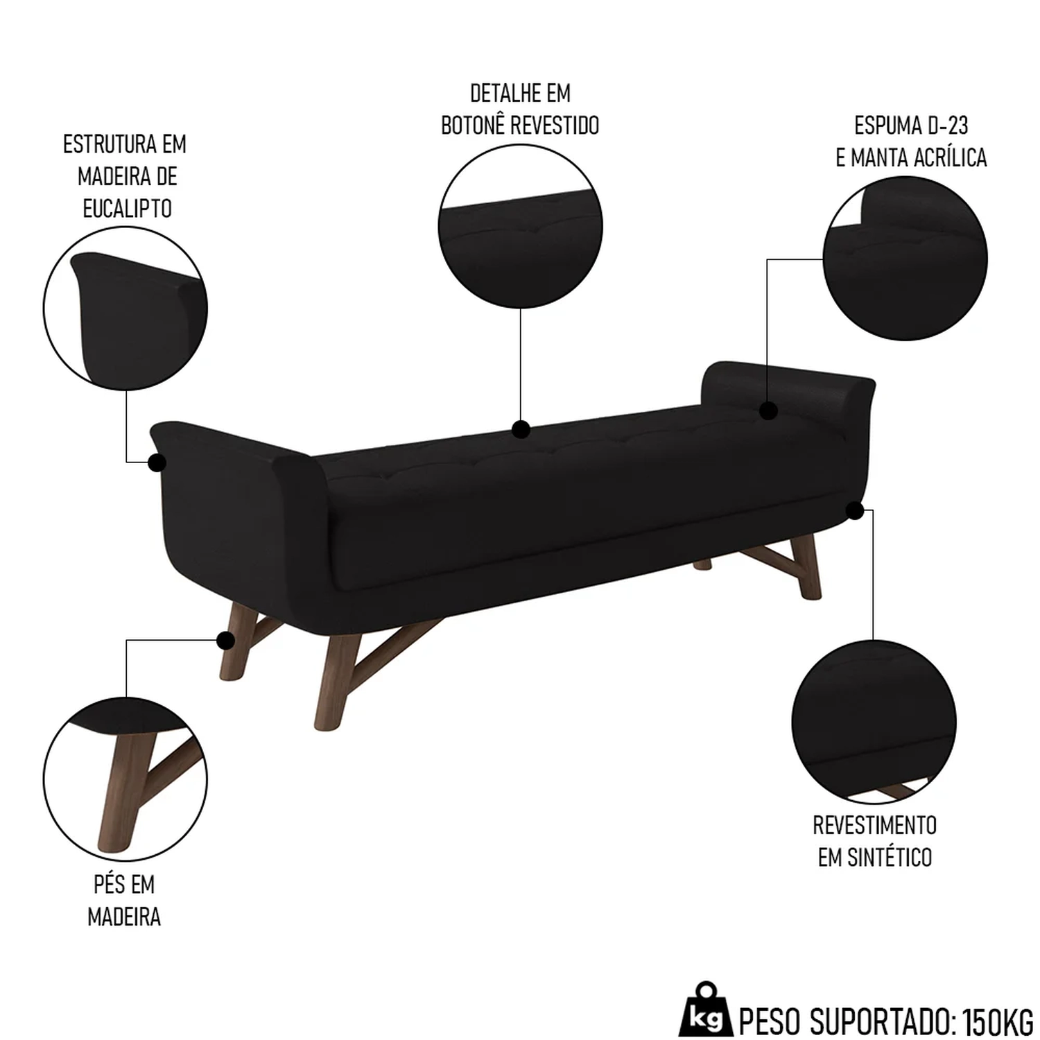 - Pés em madeira.