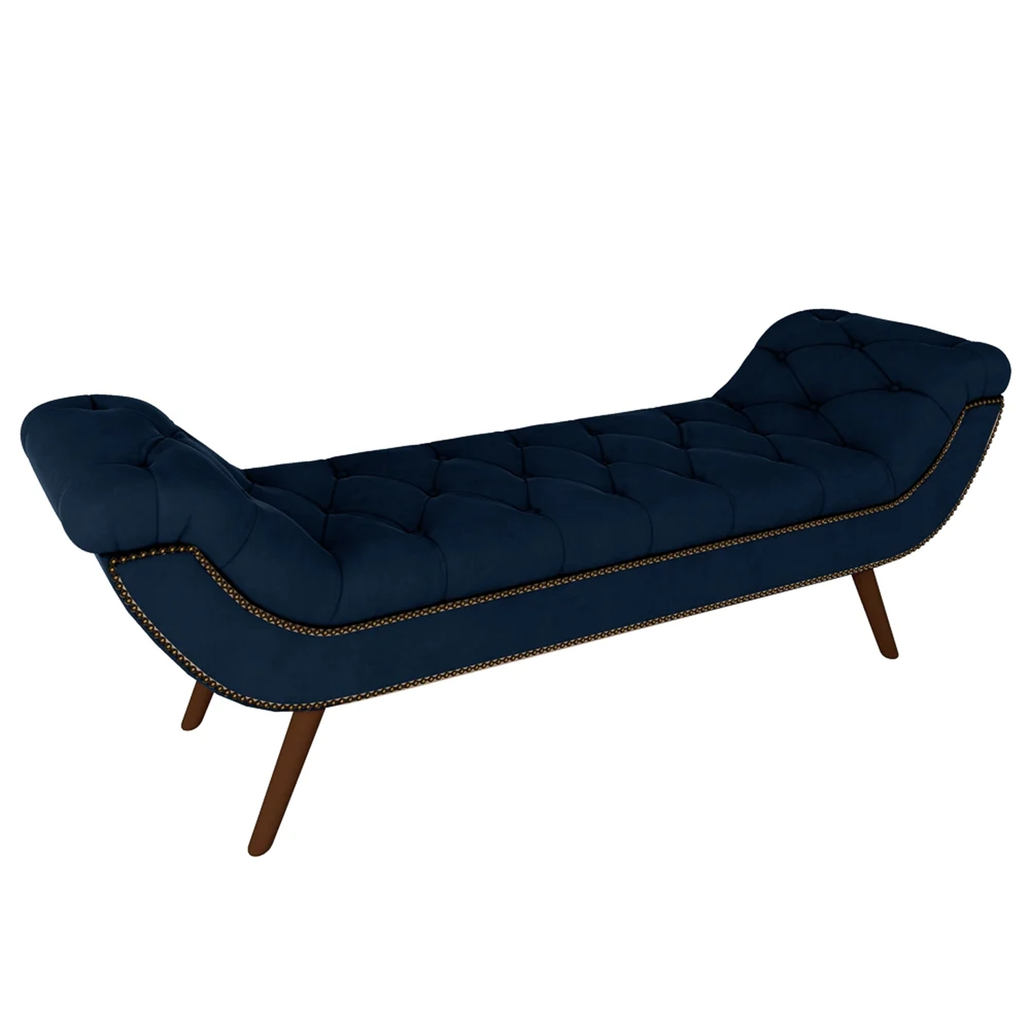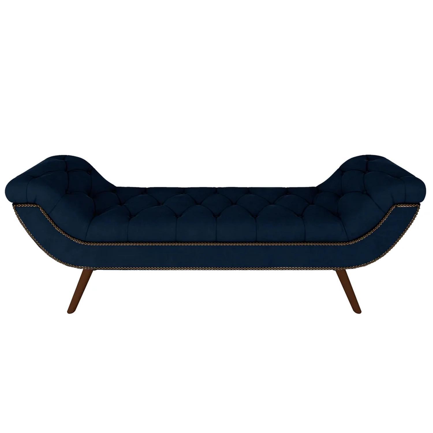 Puff Recamier Calçadeira 195cm Pés Palito Madeira Vêneto Z37 Veludo Azul Marinho - Mpozenato 81921