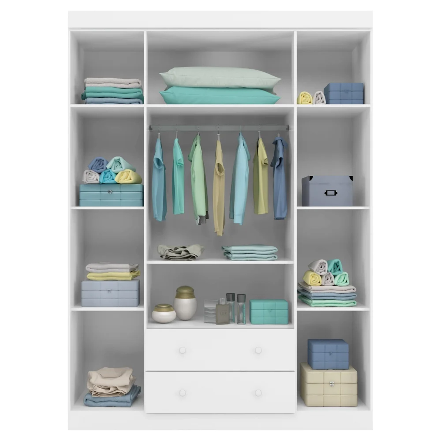 Conteúdo da Embalagem: 1 Cômoda, 1 Guarda Roupa, 1 Poltrona com Puff.