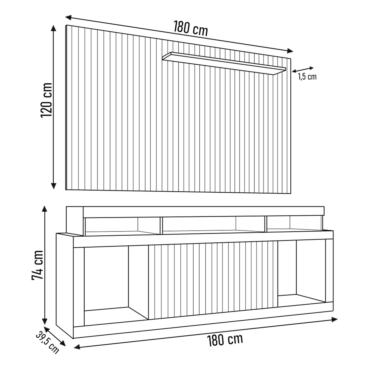 Rack Bancada: 180 x 74 x 39,5 cm.