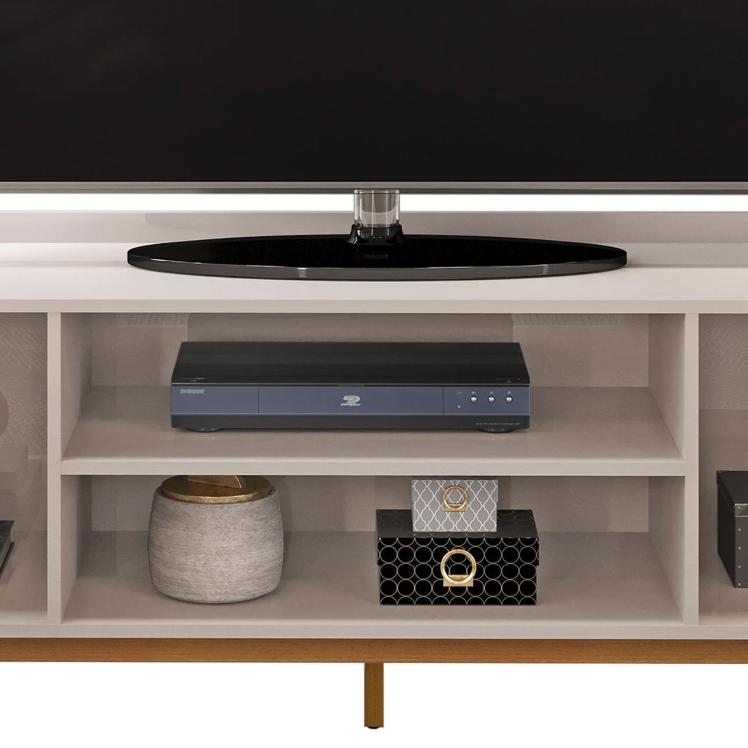 A Rack Bancada de TV 65 Pol 180cm Chest D04 Off White/Cedro é o complemento perfeito para a sua Sala de Estar, destacando-se pelo design bandeja moderno e repleto de charme.