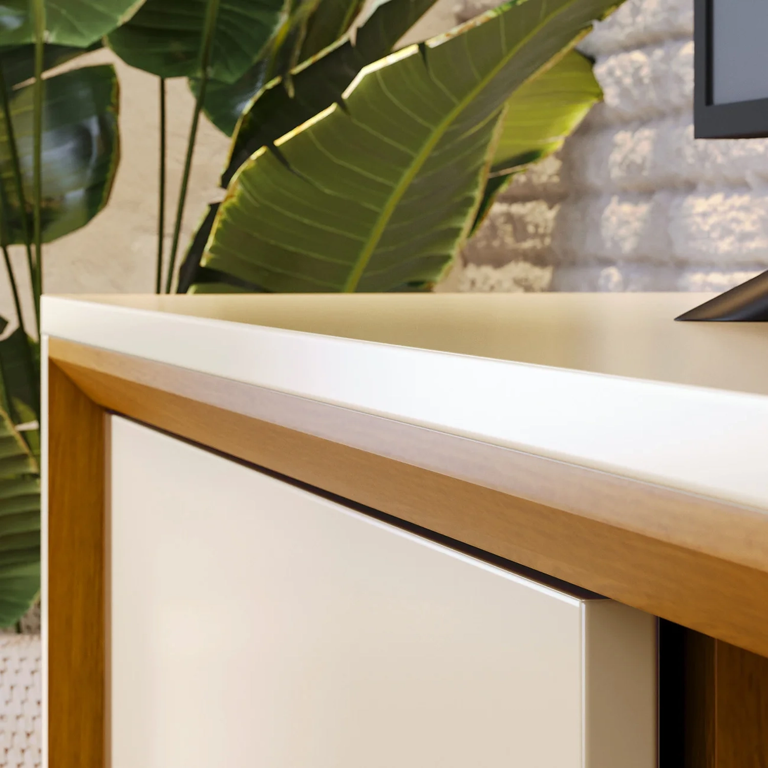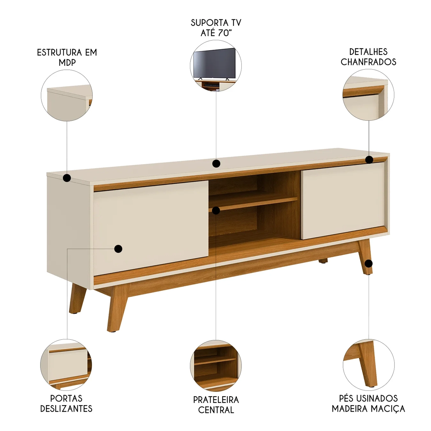 O Rack Bancada de TV 70 Pol 164cm Gaia M01 Off/Cinamomo, da Mpozenato, combina funcionalidade e sofisticação para transformar sua Sala de Estar.