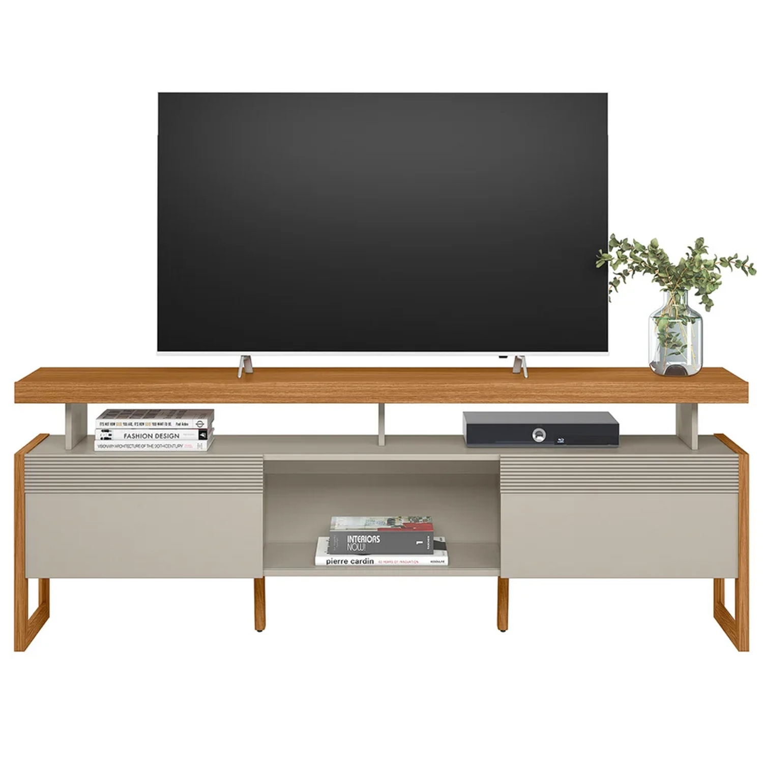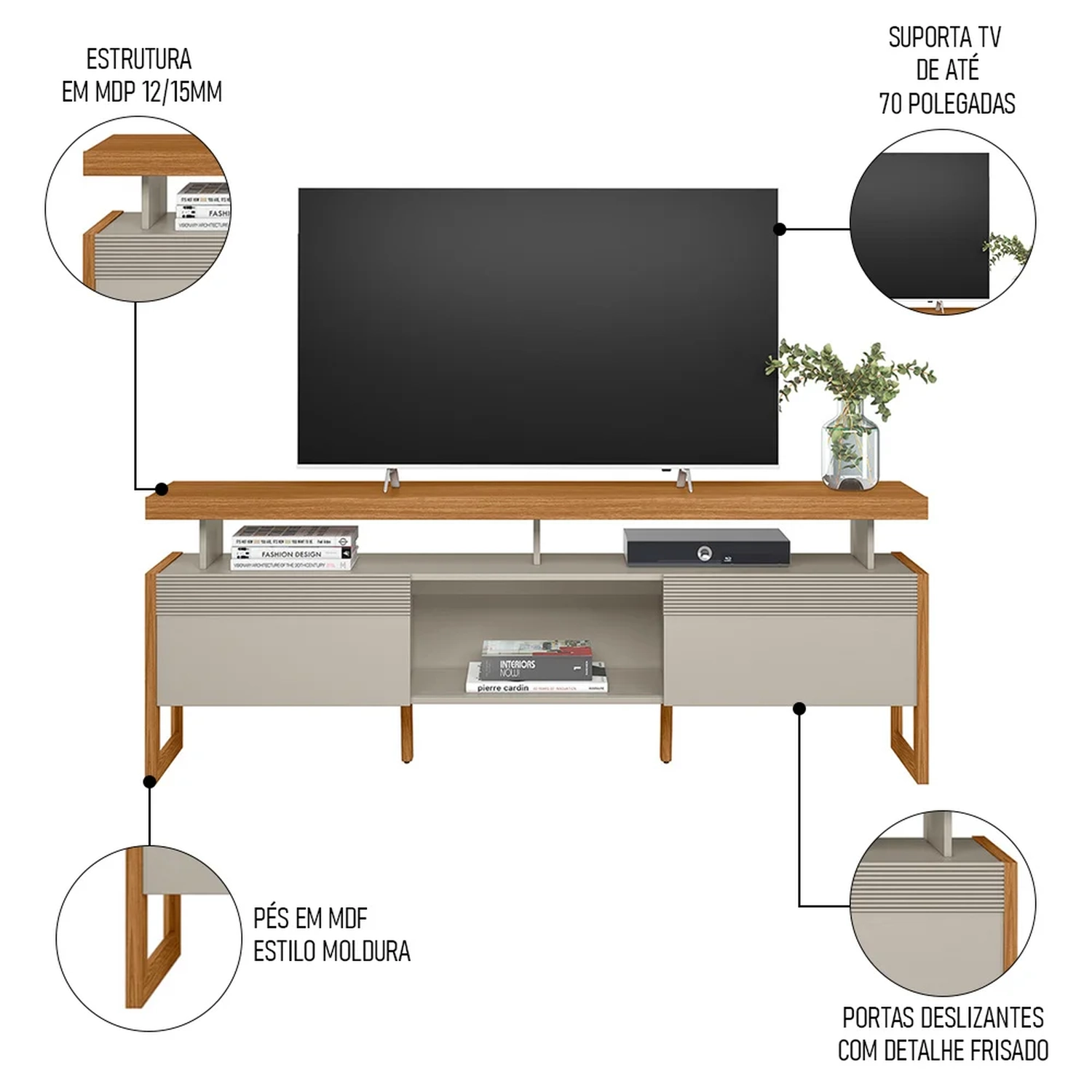 O Rack Bancada de TV 70 Polegadas 2 Portas Agata L06 Nature/Off White, da Mpozenato é um móvel versátil e funcional que pode valorizar a decoração da sua Sala De Estar.