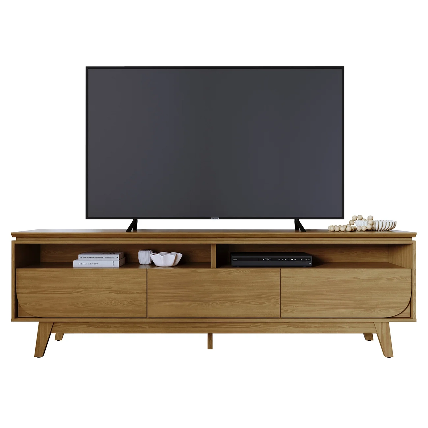 O Rack Bancada de TV 75 Pol 200cm Celina M01 Cumaru, da Mpozenato, combina design moderno e praticidade para transformar sua Sala de Estar.