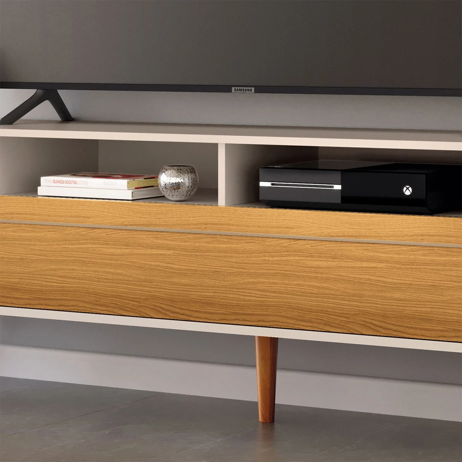 O Rack Bancada de TV 85 Pol 220cm Áureo H01 Off White/Cinamomo, da Mpozenato, é o item perfeito para transformar sua Sala de Estar em um espaço moderno e inovador.