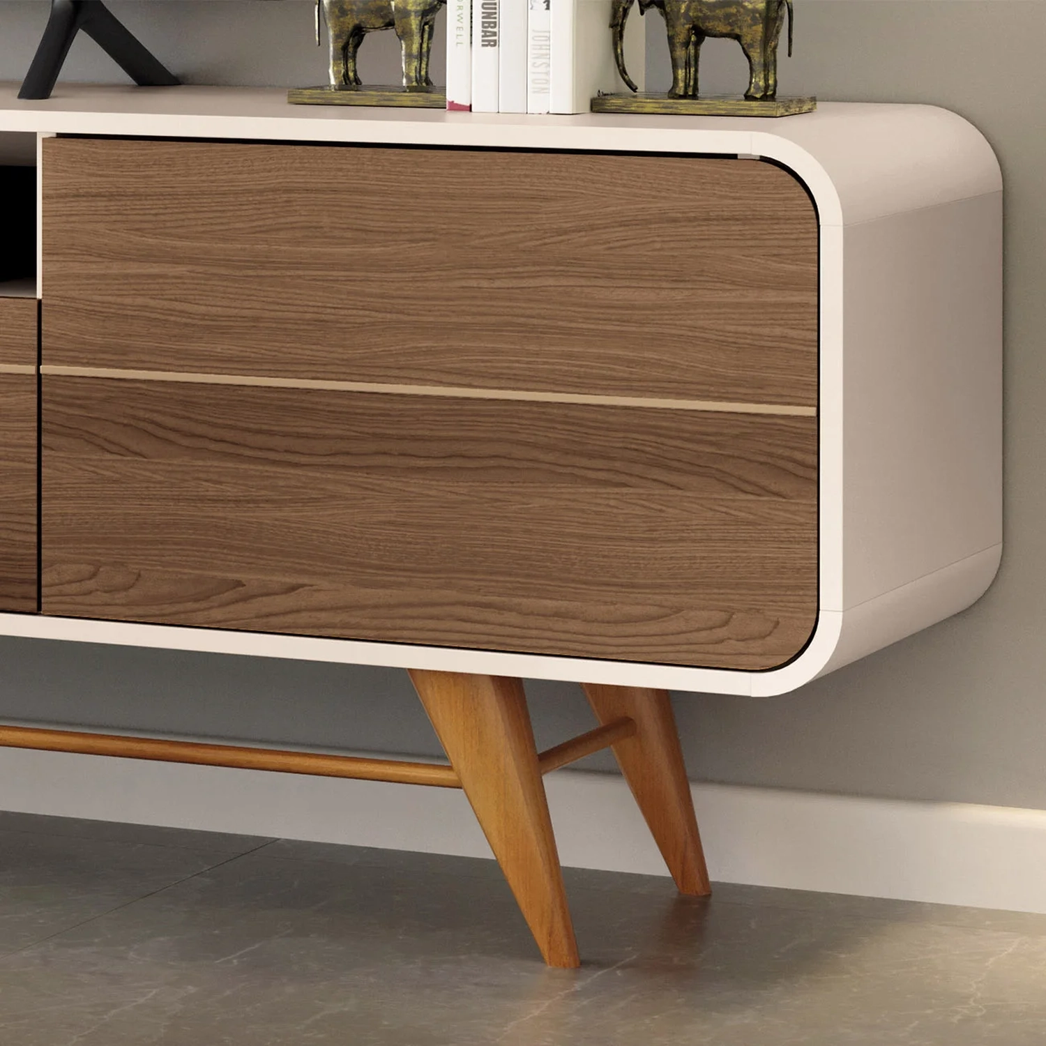 Além da funcionalidade, com capacidade para acomodar TVs de até 85 polegadas, esse rack ainda conta com cantos arredondados e filetes decorativos nas portas. Já os pés em madeira maciça torneados dão um charme adicional. Para completar, essa Bancada possui três portas espaçosas, que oferecem amplo espaço de armazenamento para os mais diversos itens, enquanto os nichos centrais são ótimas opções para instalar os demais aparelhos eletrônicos. Com esse móvel, você terá funcionalidade e estilo tornando seu Ambiente Moderno. Adicione charme e organização a sua sala com esse Rack Para TV.