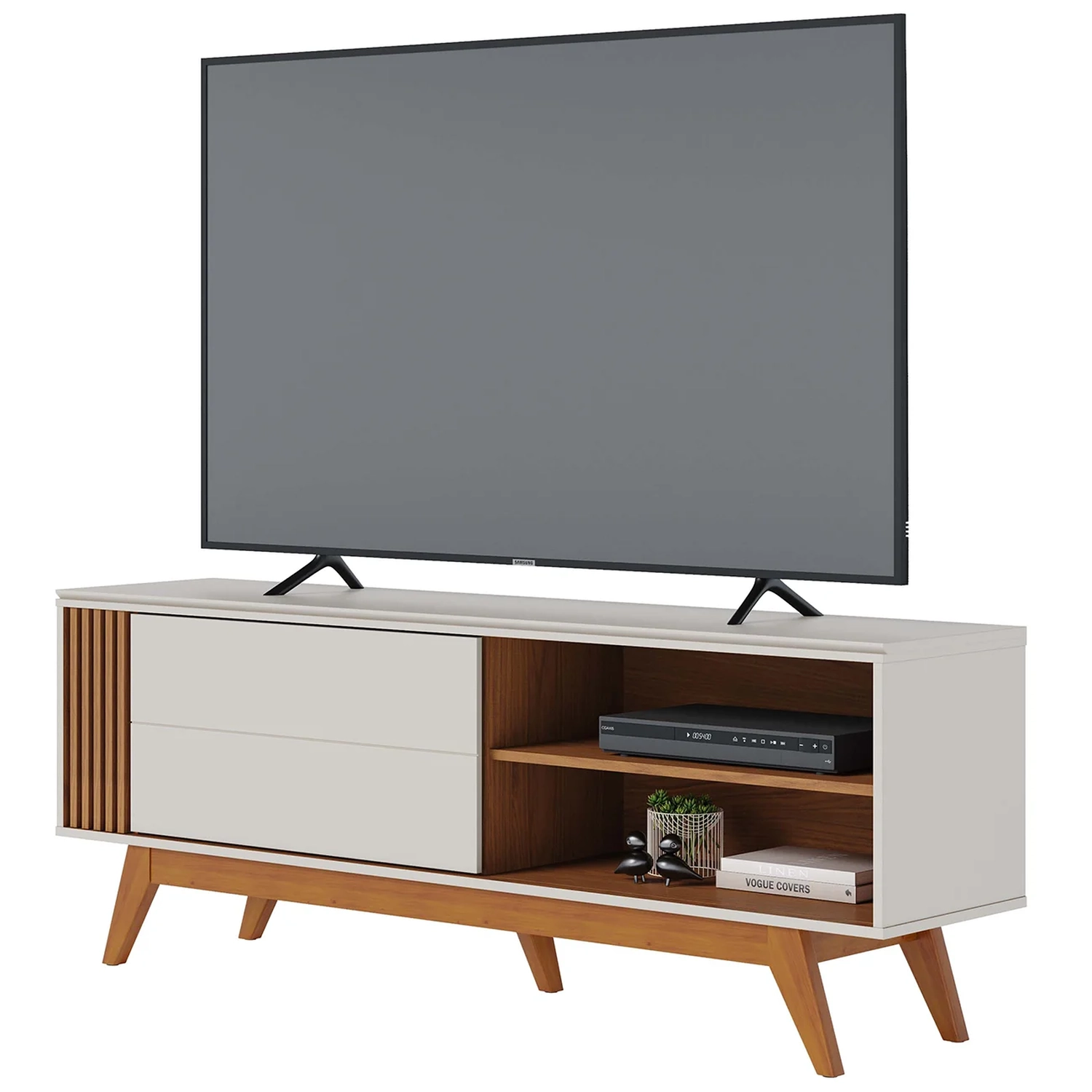Rack Bancada Para TV 60 Pol 160cm Diana Off White/Freijó C05