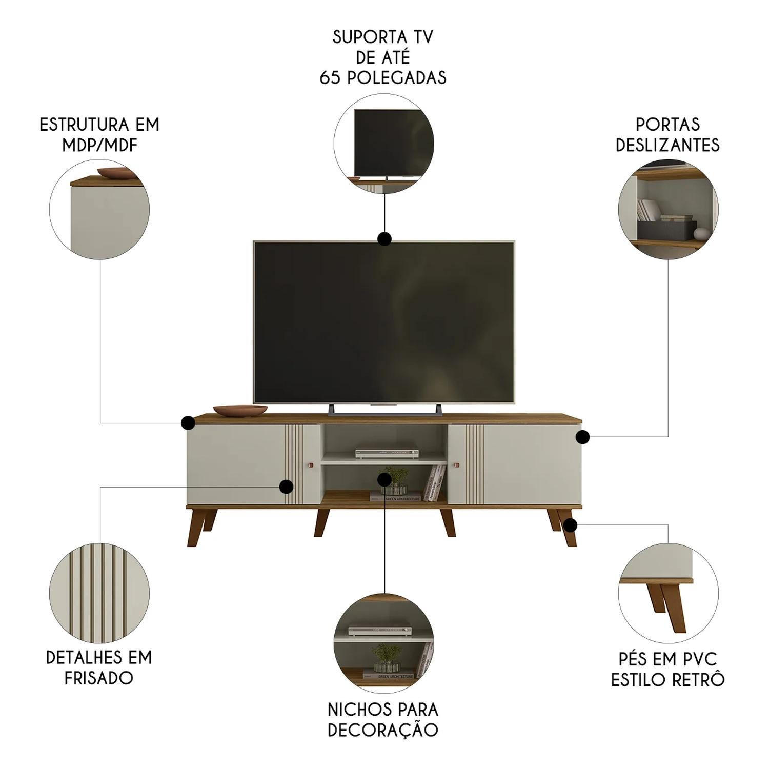 Rack Bancada Para TV 65 Pol 160cm Sia Off/Nature Z49 - Mpozenato
