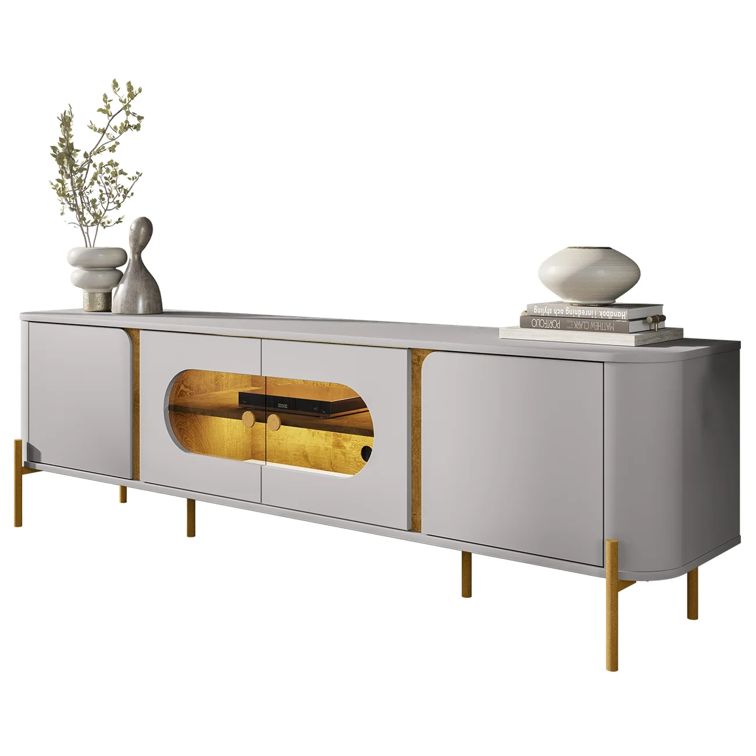 Com espaço interno amplo e uma prateleira fixa, o Rack oferece excelente espaço para a organização de eletrônicos, objetos decorativos e outros itens. A portas com dobradiças soft close garantem um fechamento suave e silencioso, proporcionando maior conforto e praticidade no dia a dia.