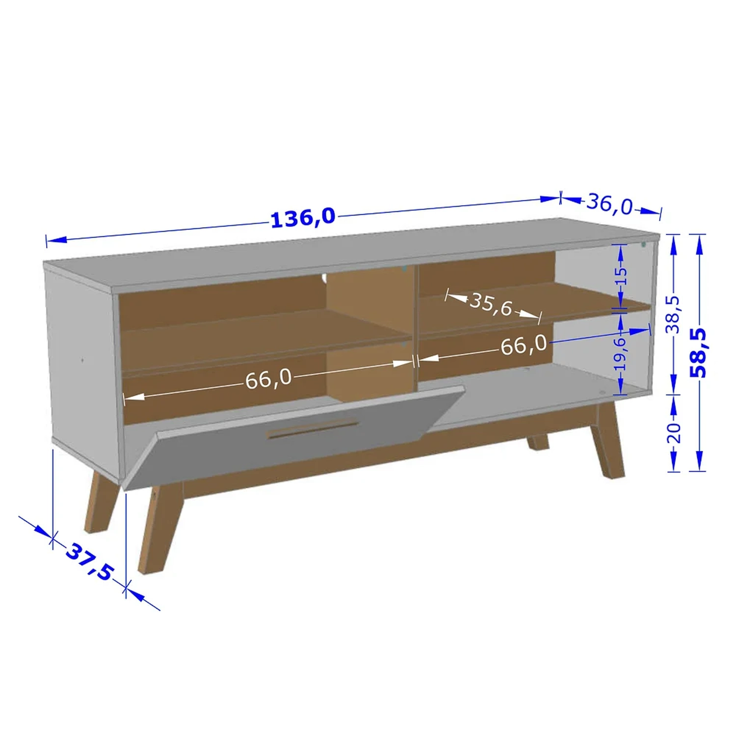Espaço para TV: (Largura x Profundidade) 136 x 36 cm.