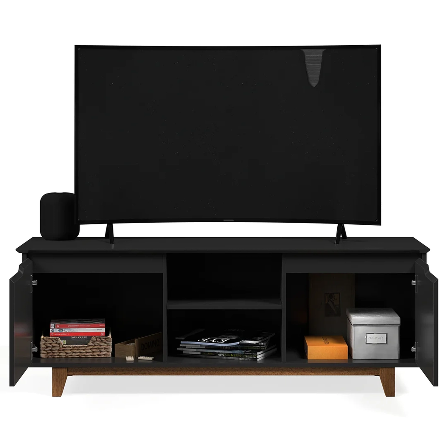 Transforme sua sala em um espaço de entretenimento e estilo com o Rack para Sala Bancada de TV 55 Pol 139cm Flow Preto, da EJ Móveis!