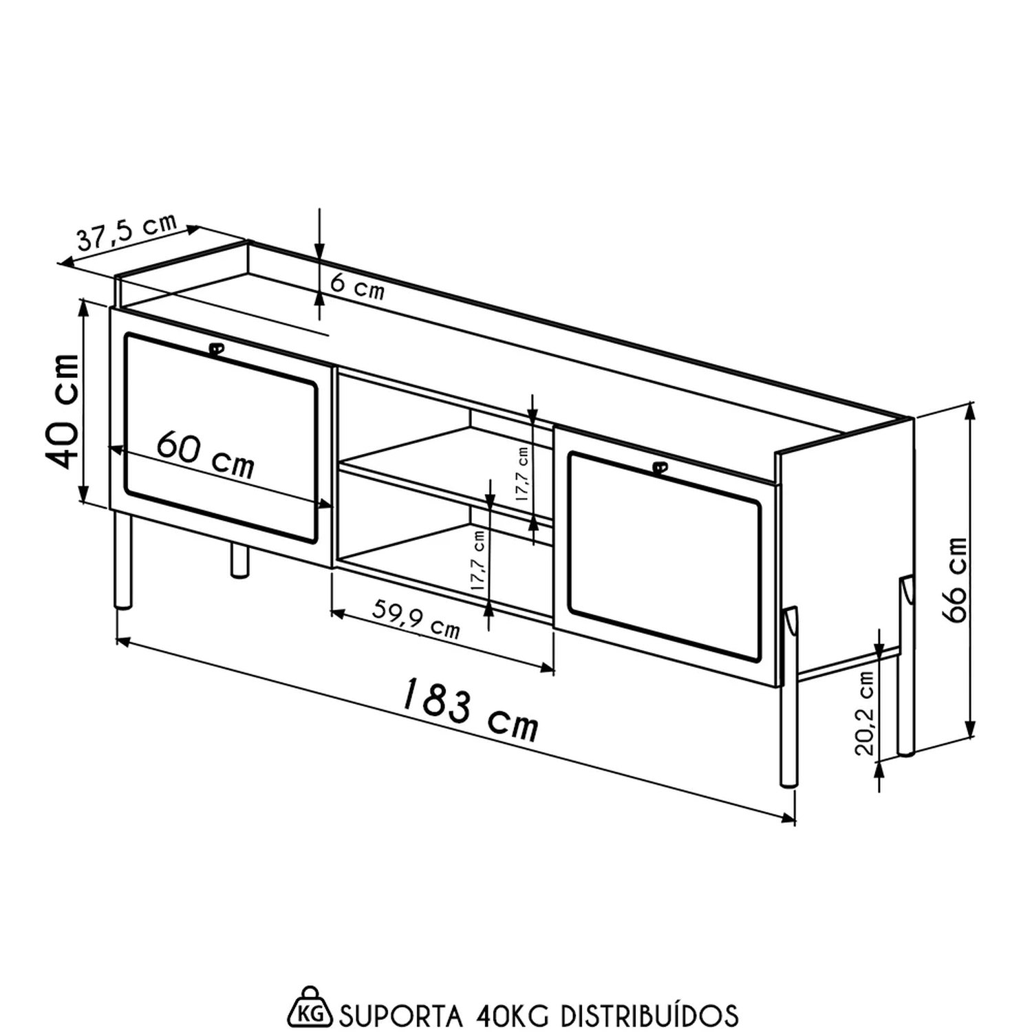 Peso Suportado Distribuído: 40 kg.