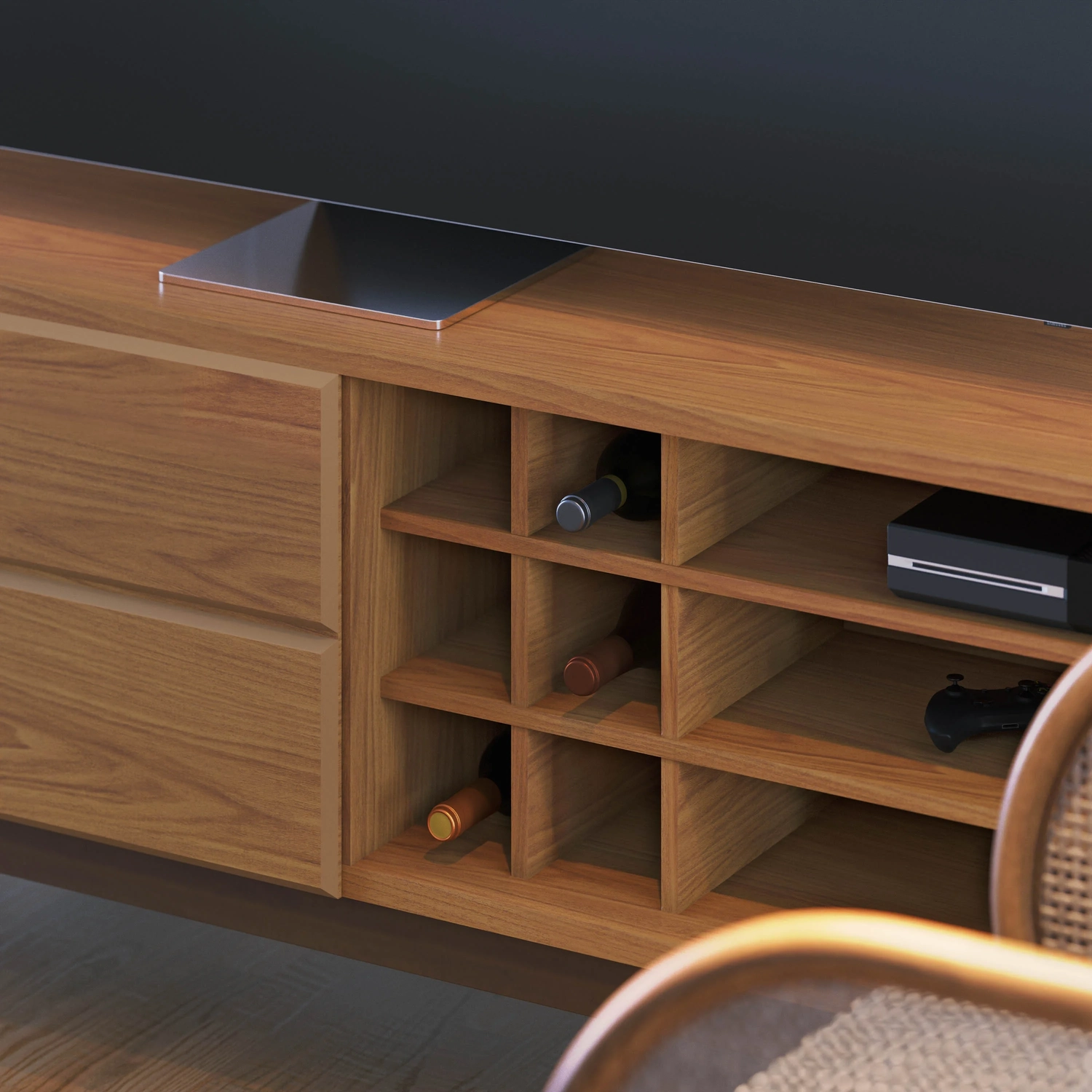 - Nicho adega para até 6 garrafas com montagem opcional.