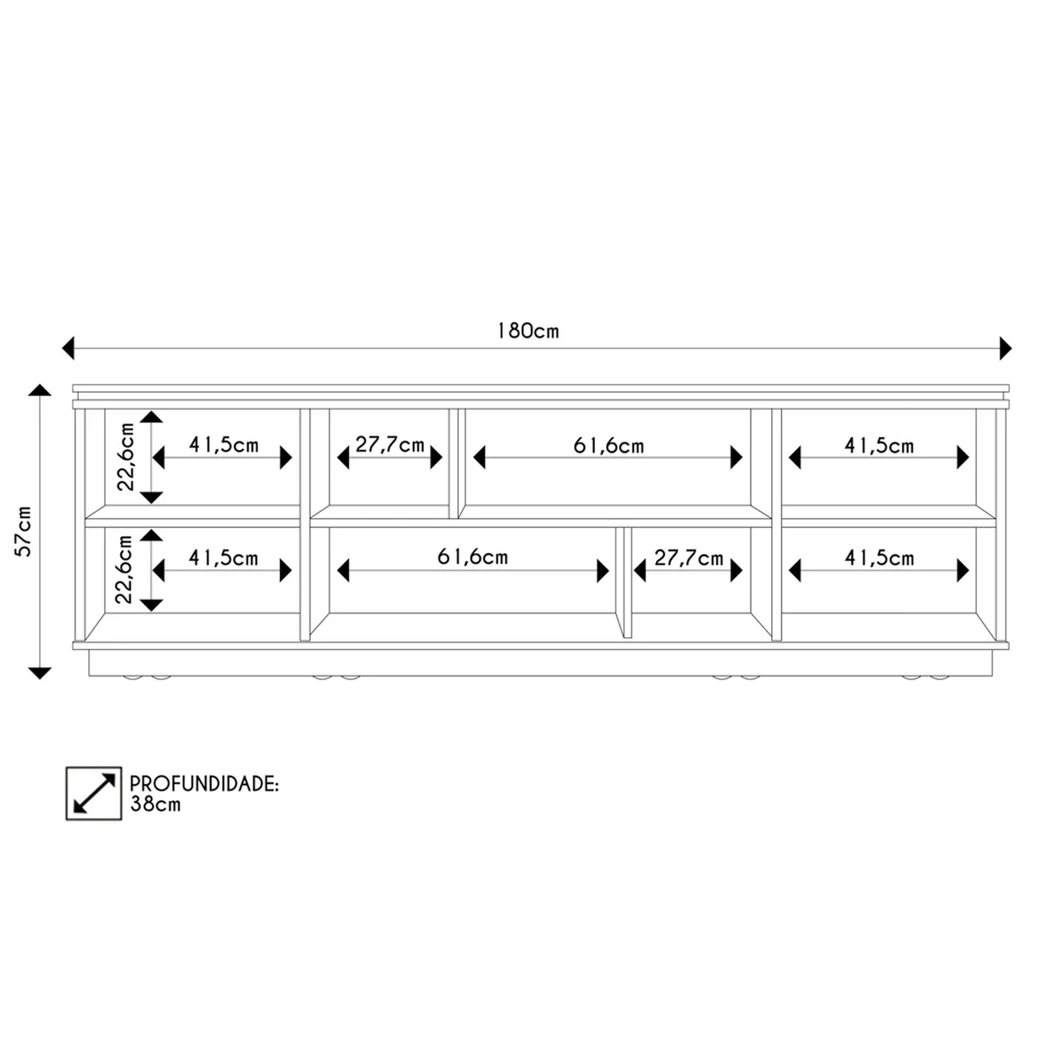 Profundidade: 38 cm.