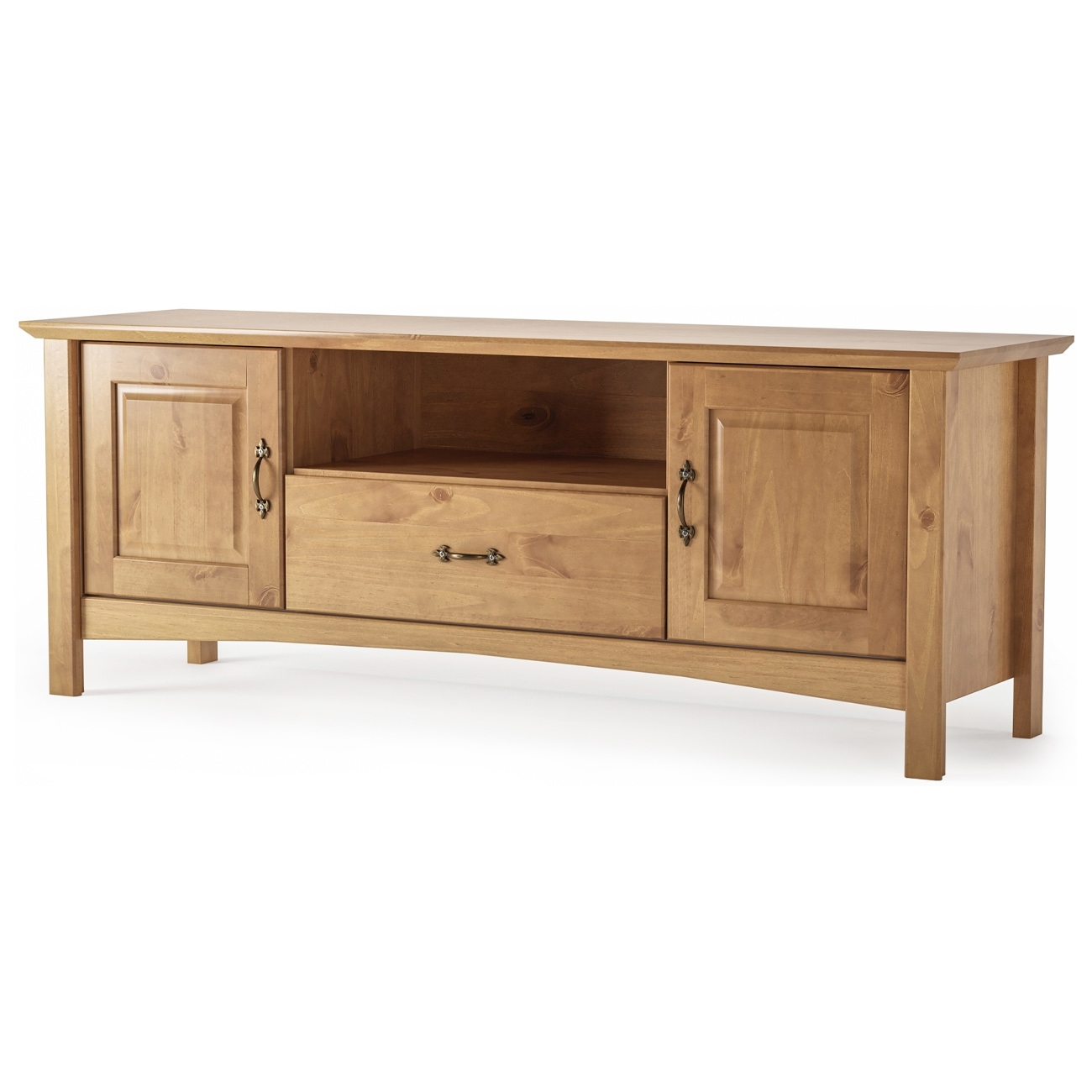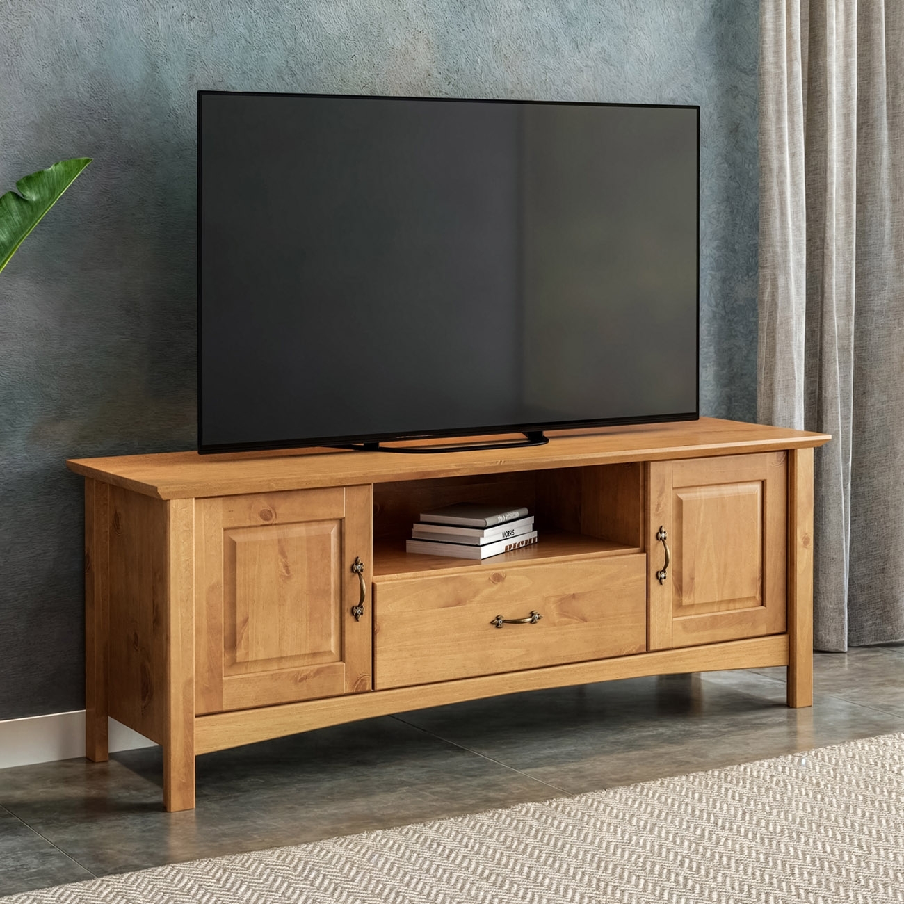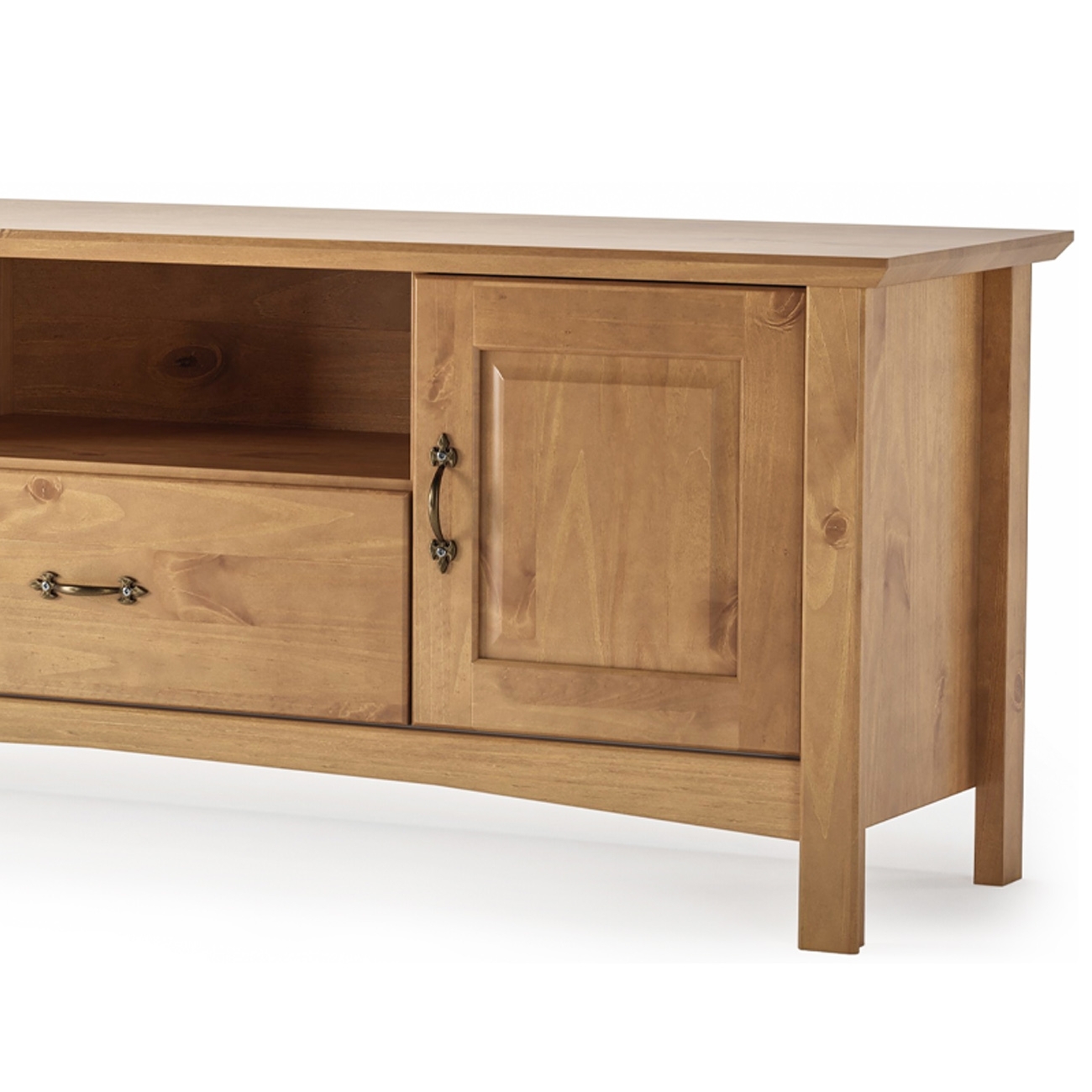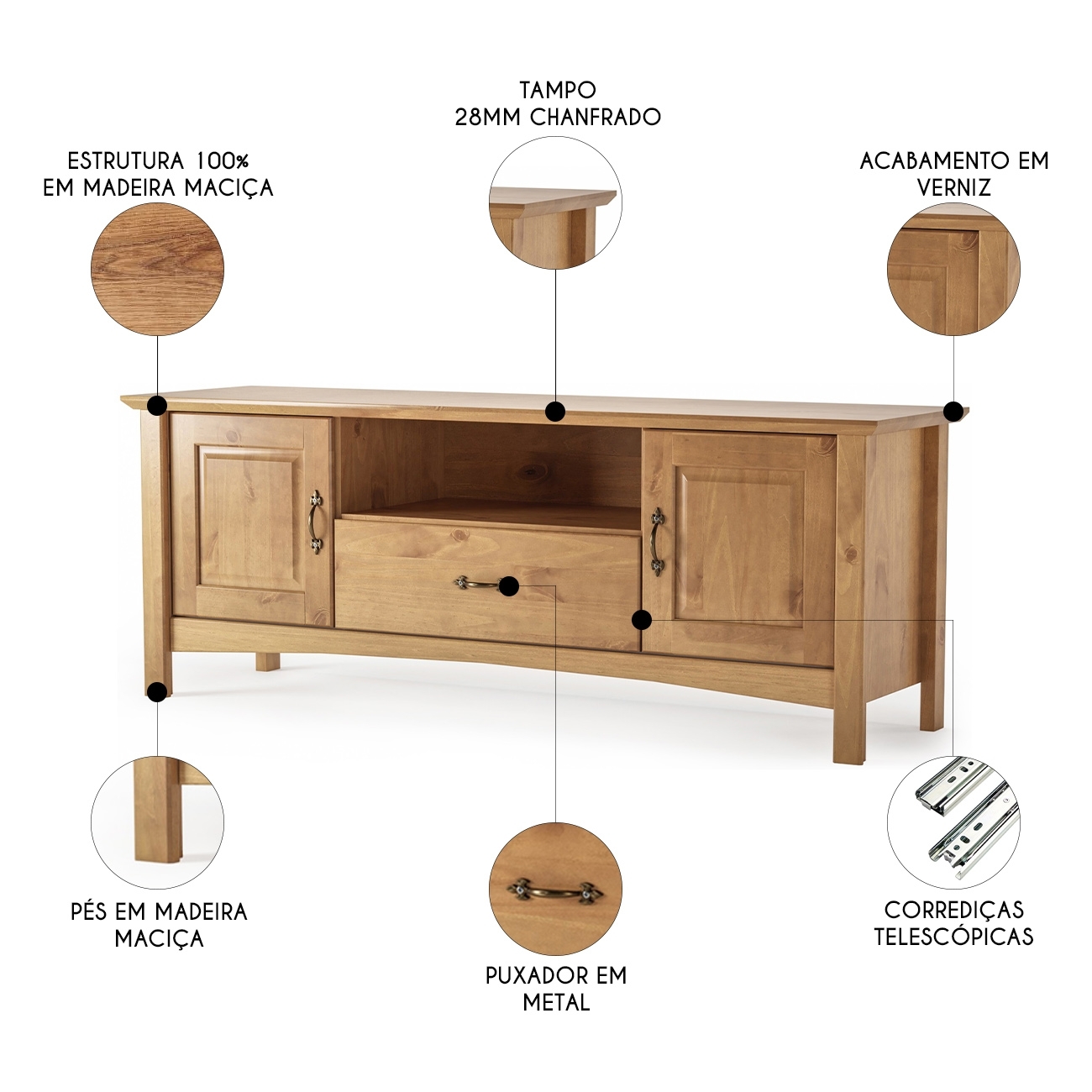 A estrutura em madeira maciça do Rack para TV garante estabilidade no uso diário, enquanto o tampo chanfrado adiciona um toque refinado. As divisões internas permitem acomodar eletrônicos com fluidez e mantêm a rotina fácil em qualquer Sala Planejada com clima equilibrado.