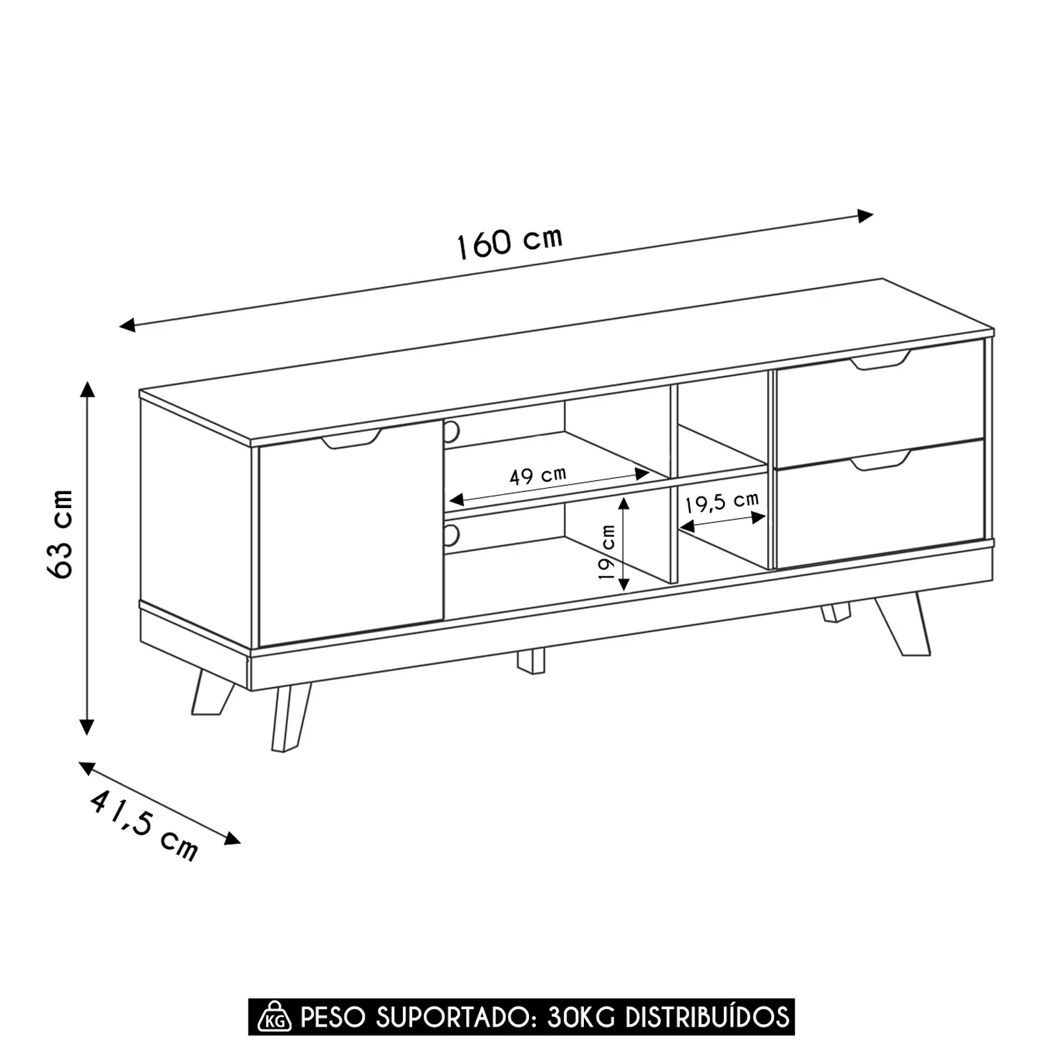 Rack Tv 65 Pol 160cm com 1 Porta Jaina Pinho/Off White A09 - Mpozenato