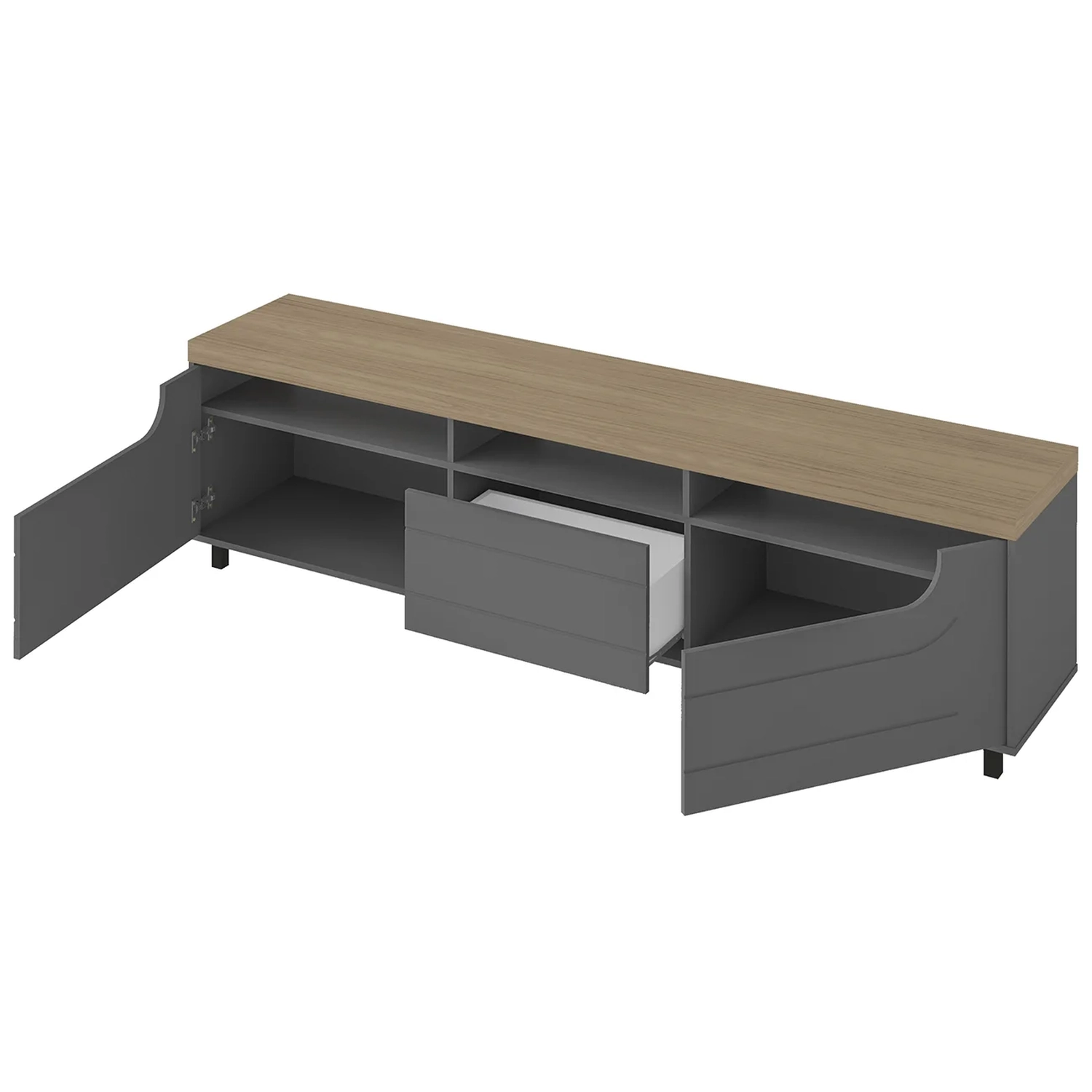 Rack Tv 75 Pol 200cm com 2 Portas Abel Carvalho/Grafite A09