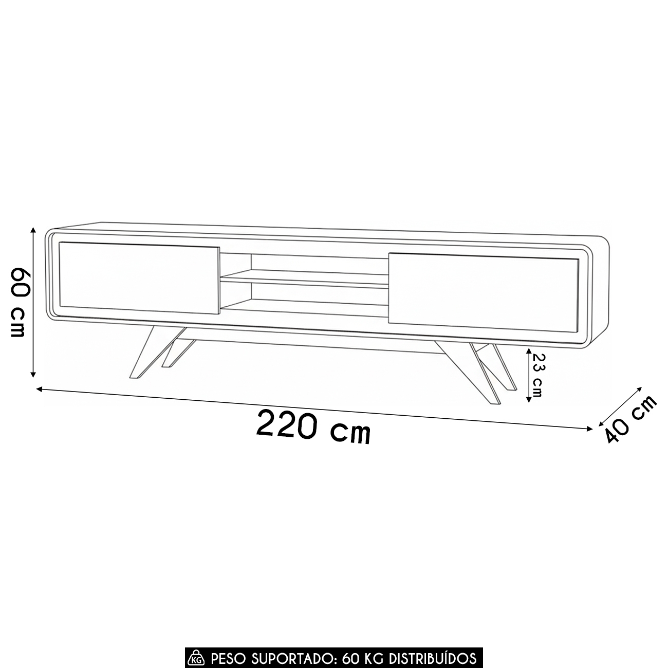Peso Suportado: 60 kg Distribuídos.