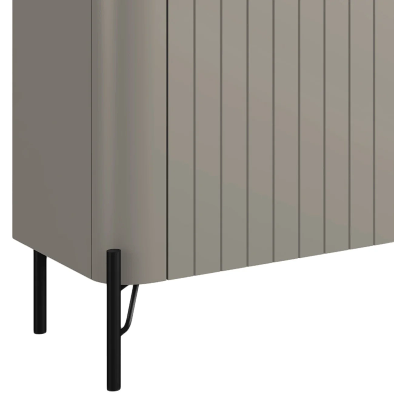 Os pés metálicos com pintura epóxi acrescentam estabilidade e um toque de sofisticação, enquanto a sapata plástica preserva o piso contra riscos. Seus cantos arredondados transmitem leveza ao visual e aumentam a segurança no uso, complementados por um acabamento que valoriza o conjunto.