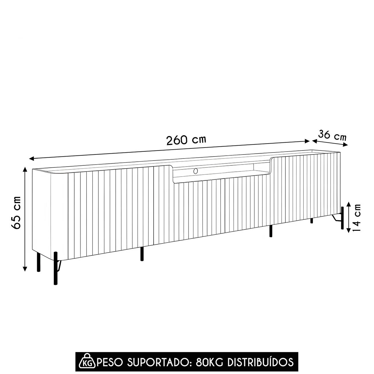 Peso Suportado: 80 Kg distribuídos.