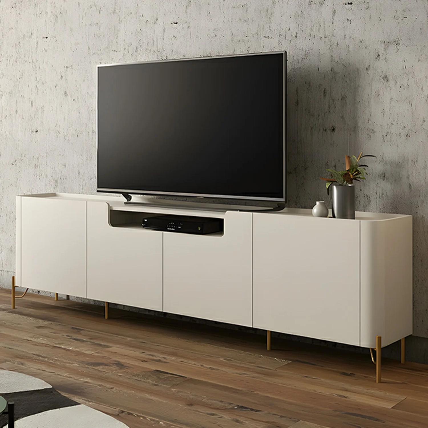 Rack TV 85 Pol 260cm 4 Portas Lisas Blen Luna/Dourado I06 - Mpozenato