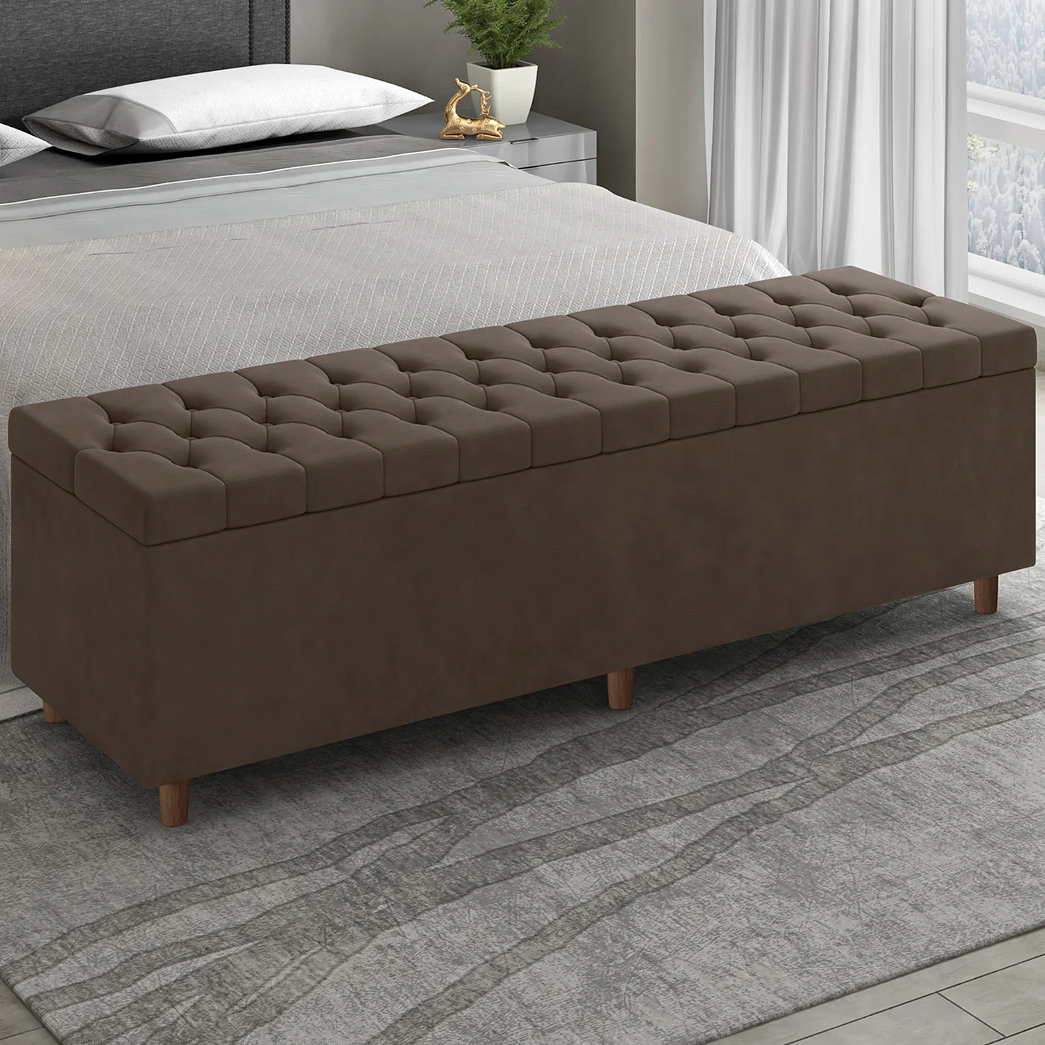 Recamier Baú Estofado Casal 140cm Indra Veludo Marrom Z04 - Mpozenato
