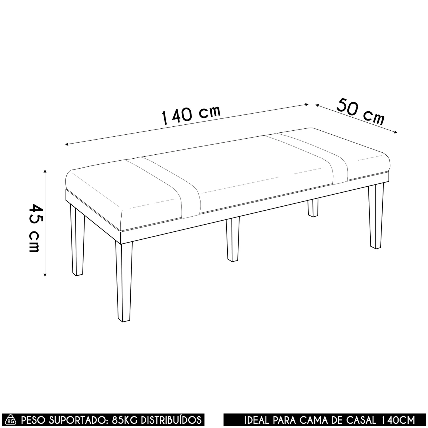 O assento estofado garante conforto no uso, sendo ideal para relaxar, apoiar os pés ou até como apoio extra no Quarto ou na Sala.