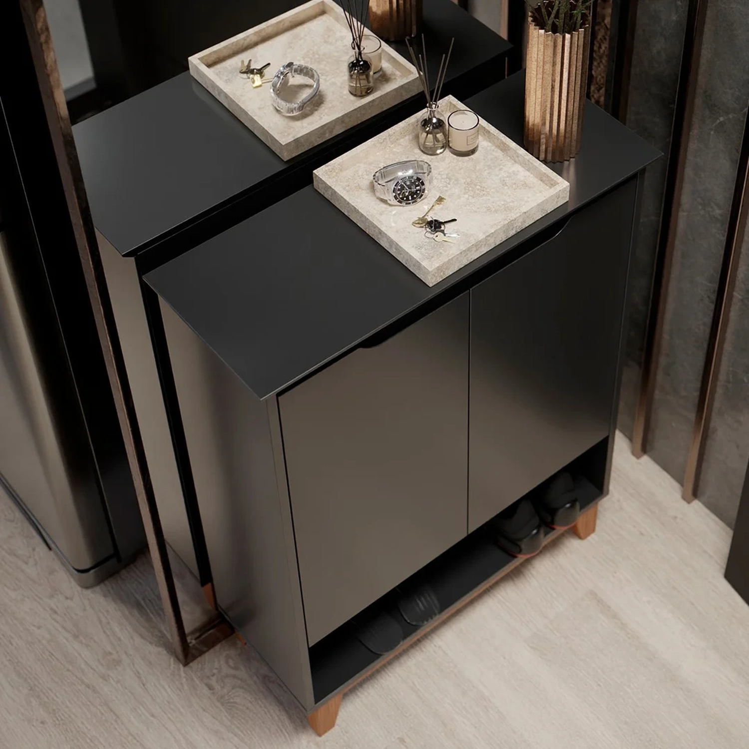 Você está procurando uma solução prática e elegante para organizar o seu hall de entrada ou quarto? Apresentamos a você a Sapateira para Hall de Entrada Quarto 68cm Flow Preto, da EJ Móveis, um móvel versátil e funcional que vai encantar você!