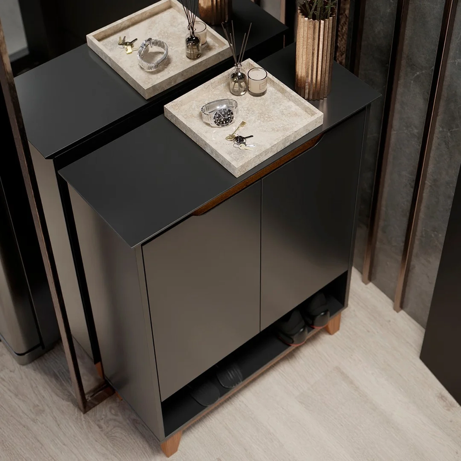 Com um design moderno e sofisticado, a sapateira Flow é perfeita para quem busca otimizar o espaço e manter a organização em dia. Seus 68cm de largura garantem um tamanho compacto, ideal para ambientes menores, sem comprometer a capacidade de armazenamento. A combinação do acabamento com detalhes em freijó confere um charme especial à peça, tornando-a uma adição elegante e contemporânea para a decoração do seu ambiente. Além disso, o material de qualidade utilizado na fabricação da sapateira garante durabilidade e resistência, garantindo que você possa desfrutar do seu móvel por muitos anos.