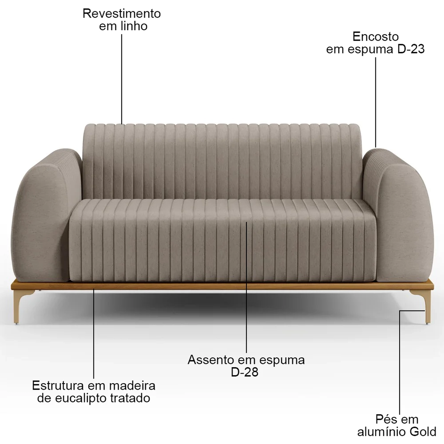 Um sofá para sala espaçoso e confortável é a peça principal do cômodo. Afinal, é onde podemos descansar assistindo uma boa série, filme favorito, ler, passar um tempo com família e amigos ou simplesmente ter o descanso merecido. Não é? Pois bem, por isso apresentamos o Sofá Molino! A princípio, ele possui base em madeira de eucalipto envernizada com pés em alumínio, estrutura em misto de madeira com MDF e OSB e a parte estofada é em espuma D-23 no encosto e espuma D-28 no assento. Além desses detalhes, também é revestido em linho bege, conferindo requinte e uma dose extra de durabilidade e resistência.