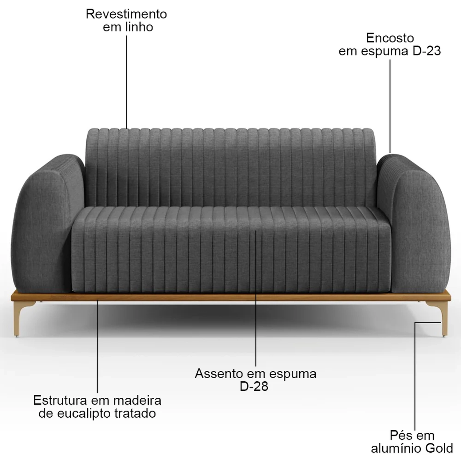 Um sofá para sala espaçoso e confortável é a peça principal do cômodo. Afinal, é onde podemos descansar assistindo uma boa série, filme favorito, ler, passar um tempo com família e amigos ou simplesmente ter o descanso merecido. Não é? Pois bem, por isso apresentamos o Sofá Molino! A princípio, ele possui base em madeira de eucalipto envernizada com pés em alumínio, estrutura em misto de madeira com MDF e OSB e a parte estofada é em espuma D-23 no encosto e espuma D-28 no assento. Além desses detalhes, também é revestido em linho cinza escuro, conferindo requinte e uma dose extra de durabilidade e resistência.