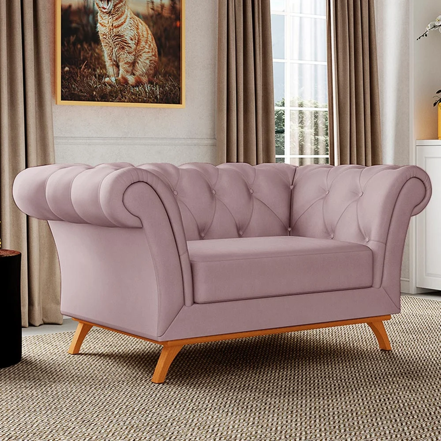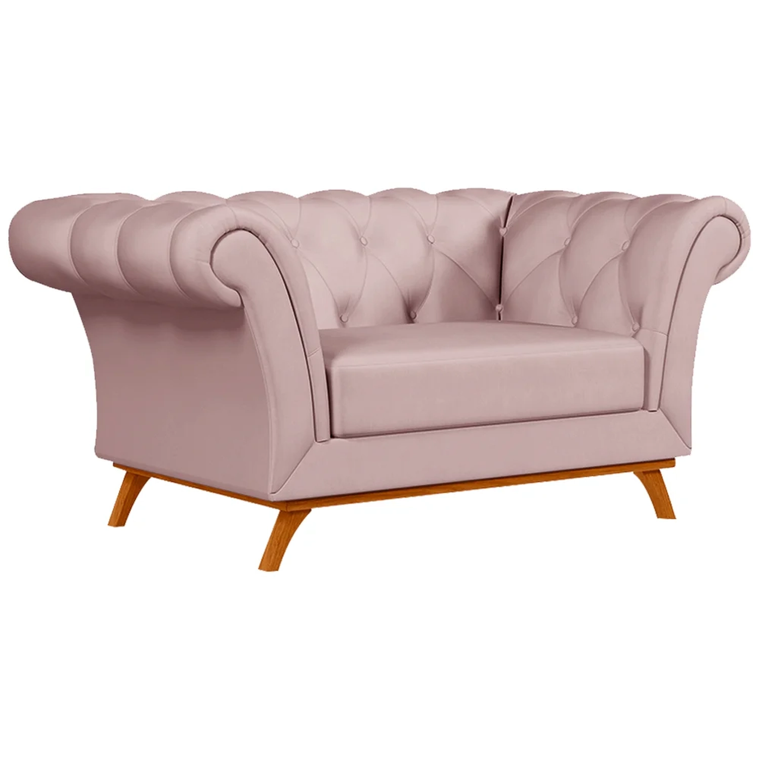 Sofá 150cm 2 Lugares Base Madeira Império C-305 Veludo Rosê - Domi 81570