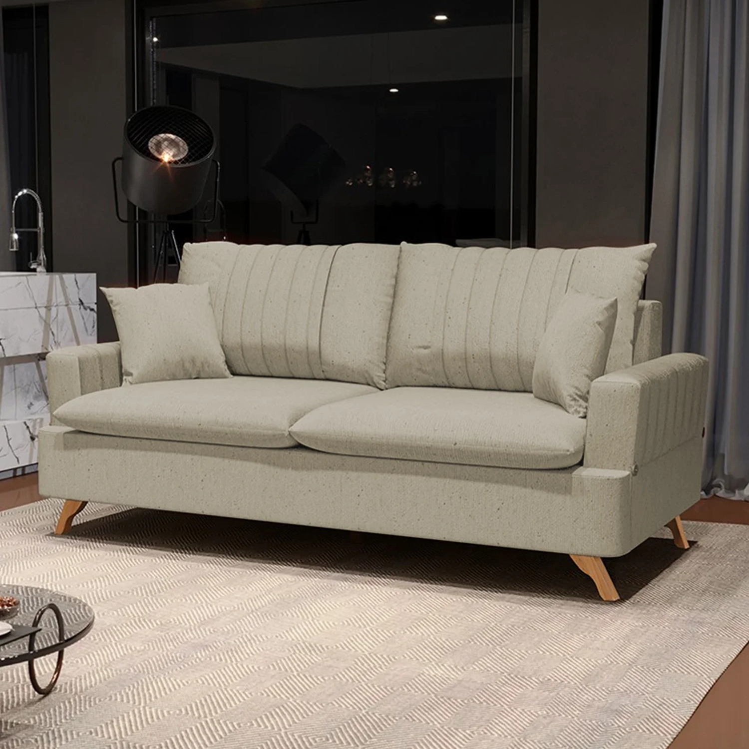 Para quem não abre mão de conforto e qualidade, o Sofá 160cm 2 Lugares com Almofadas Pés Curvos Veras Linho D05 Bege, da Mpozenato, é ideal! Vem conhecer os detalhes!