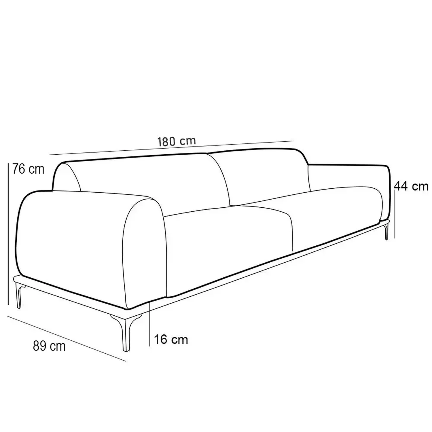 Altura do assento ao chão: 44 cm.