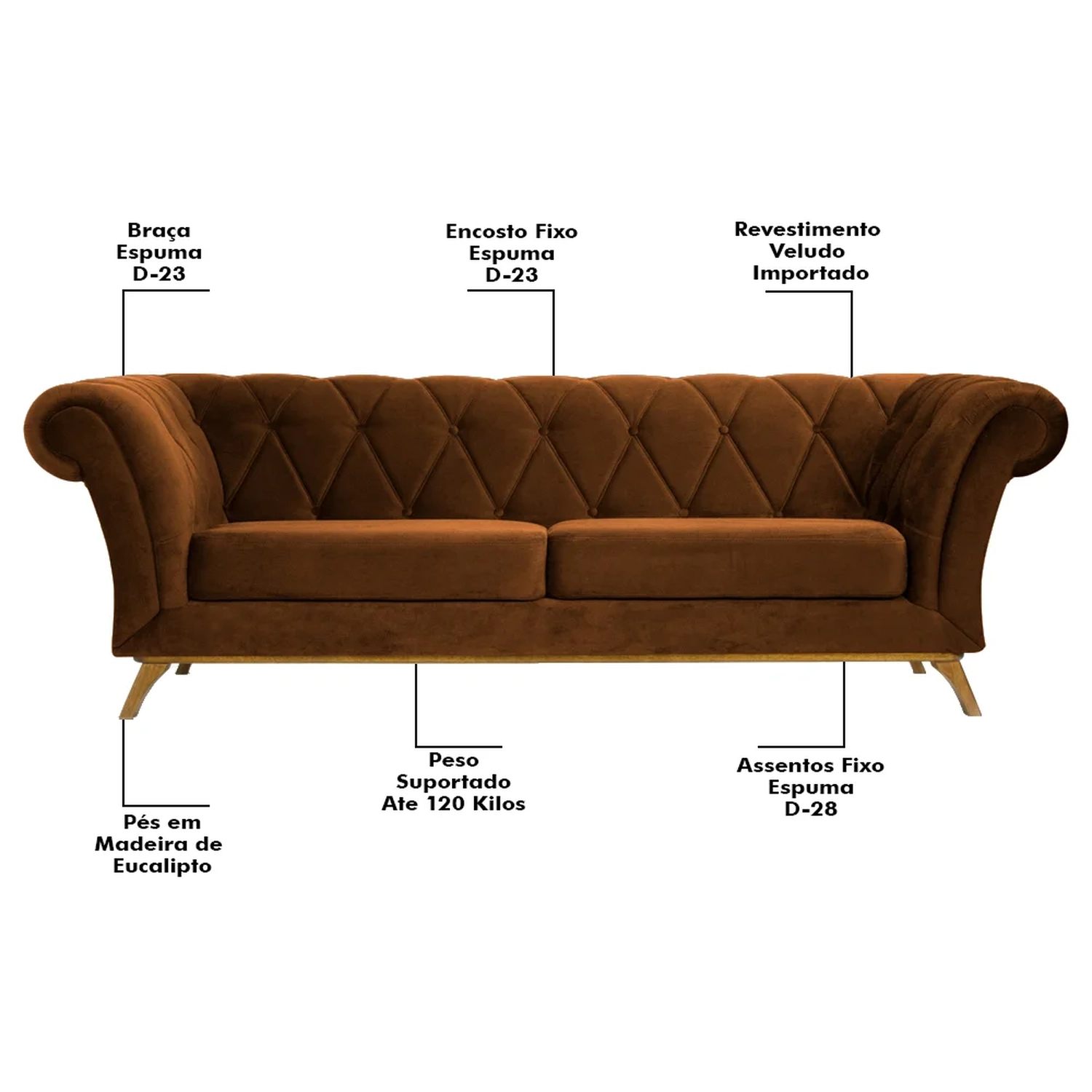 Sofá 180cm 3 Lugares Base Madeira Império C-262 Veludo Telha - Domi 77953