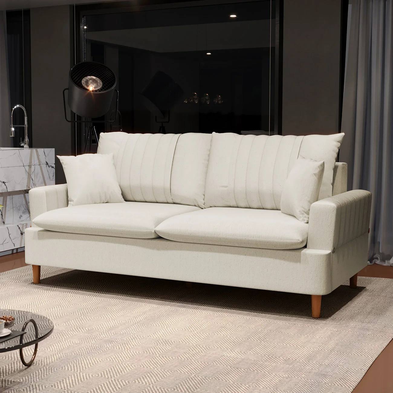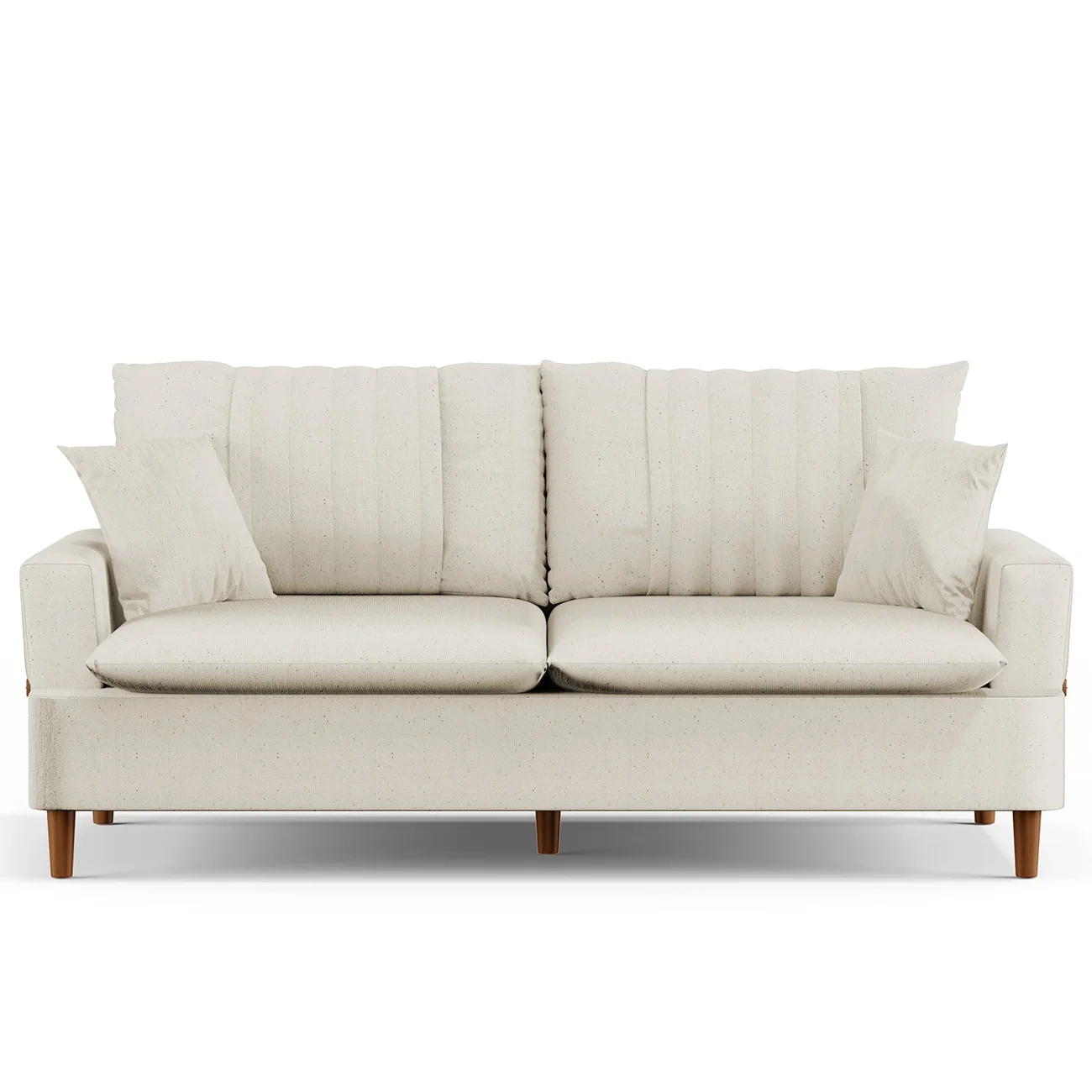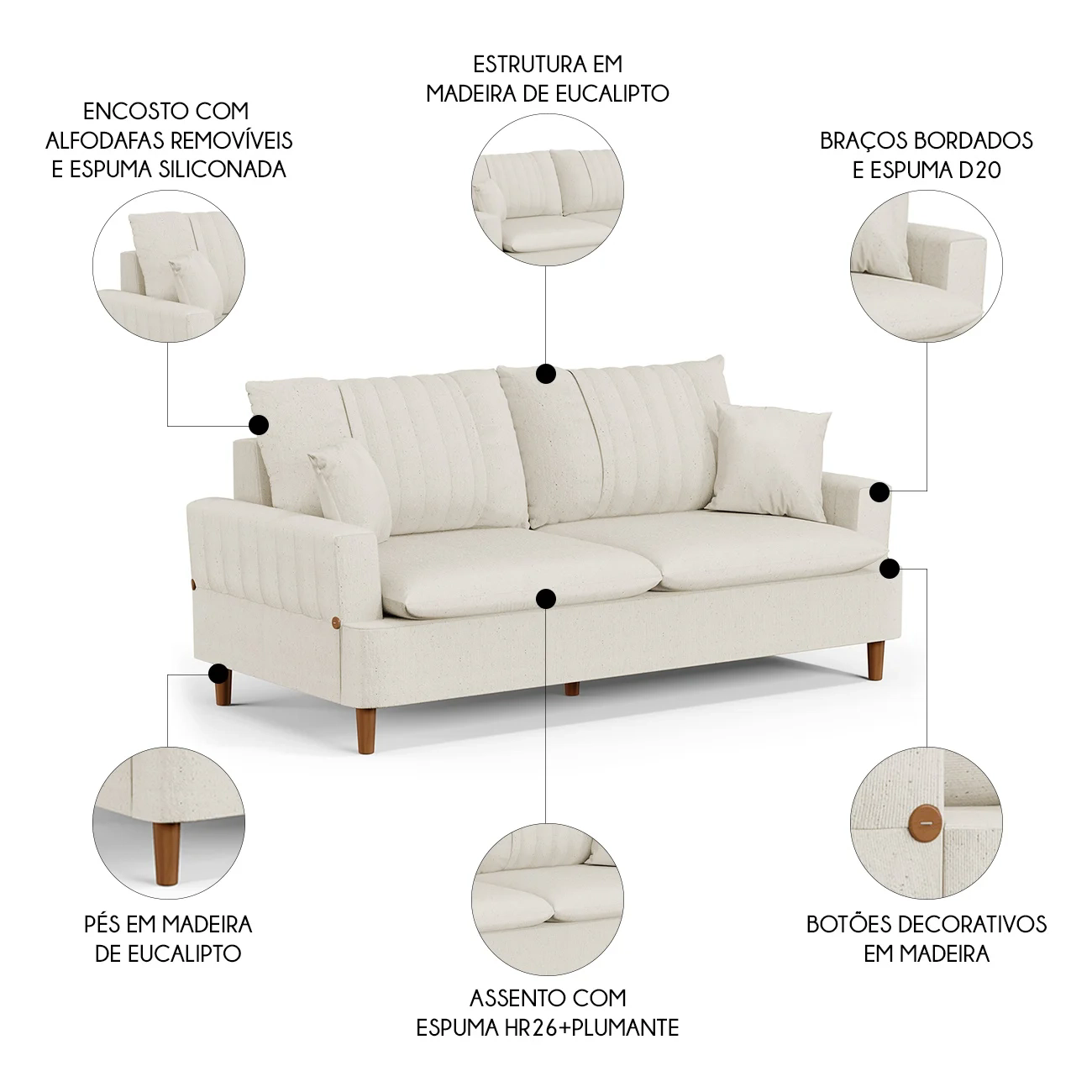 Nada melhor do que chegar em casa e poder descansar, não é mesmo? Então, vem conhecer o Sofá 180cm 3 Lugares com Almofadas Pés Curvos Veras Linho D05 Cru, da Mpozenato e surpreenda-se com o conforto!