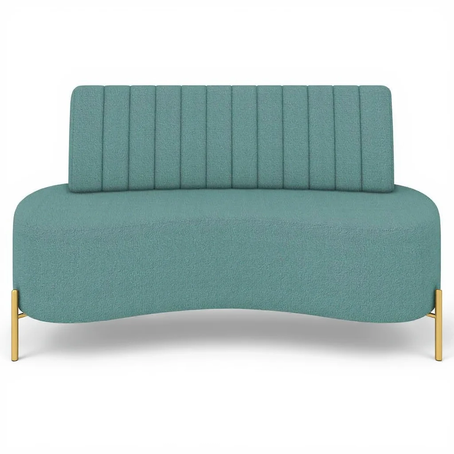 Sofá 2 Lugares 135cm Pés Aço Dourado Tamar Boucle Azul Z08 - Mpozenato
