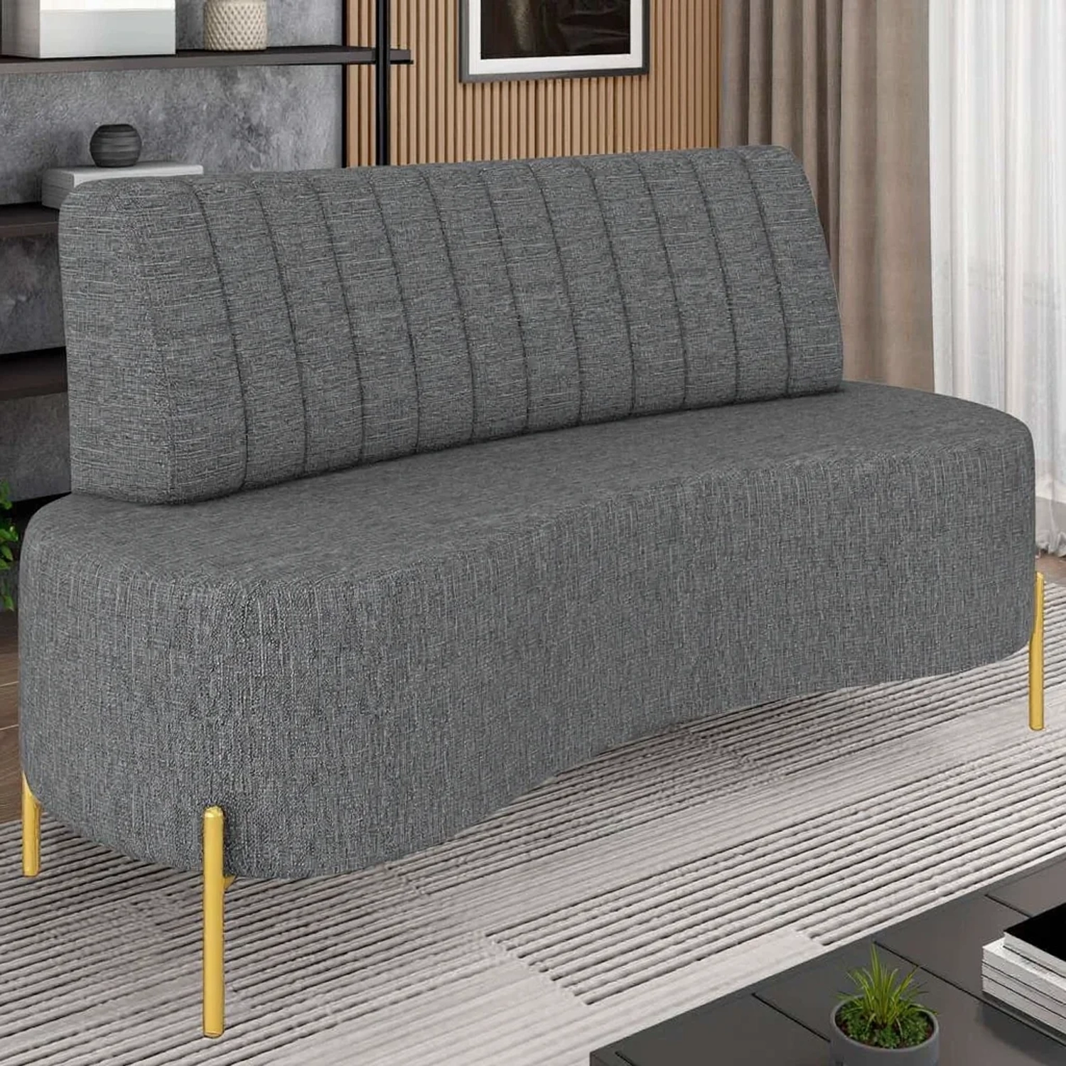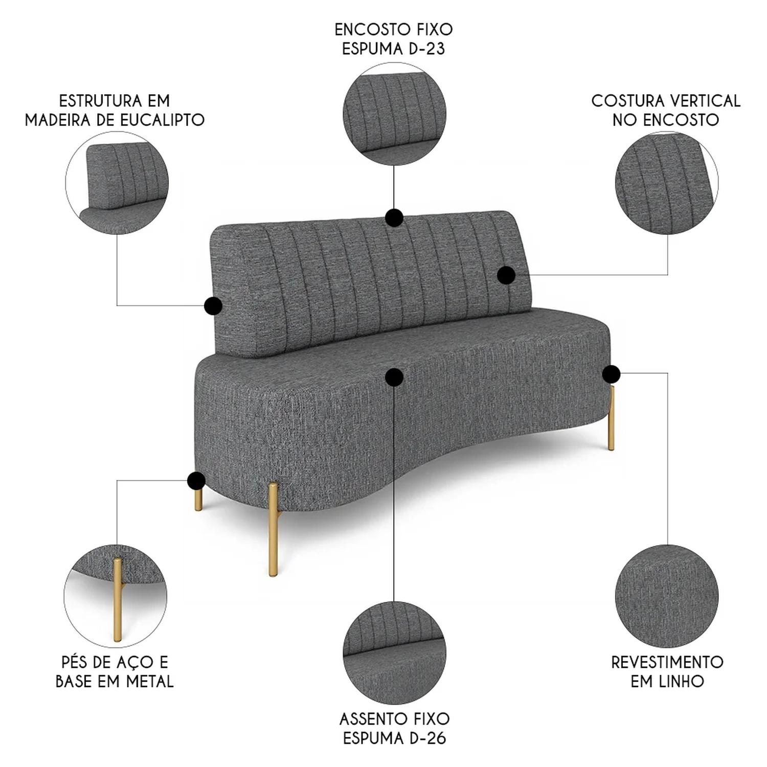 Sofá 2 Lugares 135cm Pés Aço Dourado Tamar Linho Grafite Z08 - Mpozenato