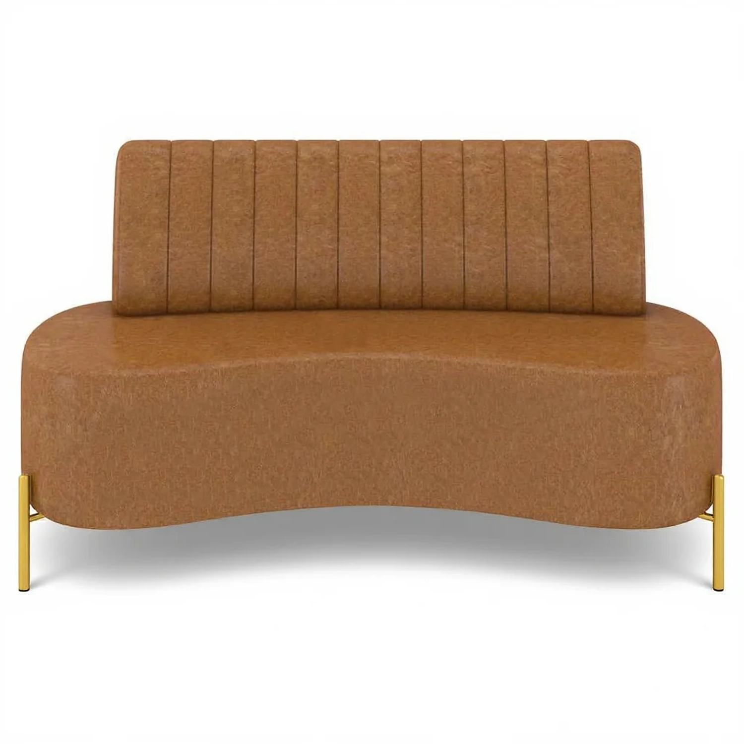 Sofá 2 Lugares 135cm Pés Aço Dourado Tamar Sintético Camel Z08 - Mpozenato