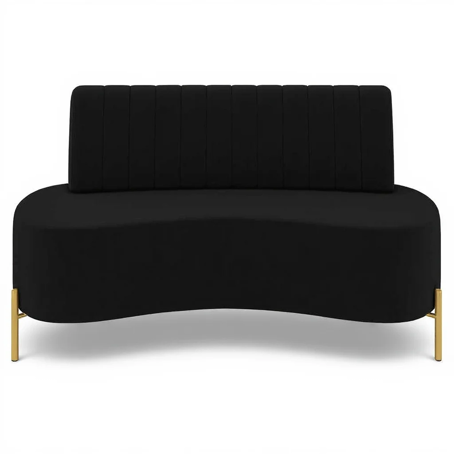 Sofá 2 Lugares 135cm Pés Aço Dourado Tamar Veludo Preto Z08 - Mpozenato