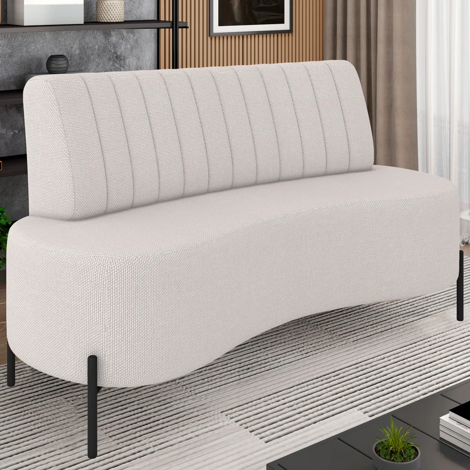 Com seu Design Orgânico e pés elegantes em aço carbono na cor preta, ele se adapta com facilidade a qualquer espaço, seja uma Sala de Estar acolhedora, um quarto de casal sofisticado, ou até mesmo uma área de recepção convidativa. Este Sofá Living tem o assento em espuma D-26 e encosto D-23 que oferece o conforto e estrutura em madeira de eucalipto tratada que garante a durabilidade essencial para o dia a dia. Imagine-se desfrutando de momentos relaxantes ou recebendo seus convidados com a certeza de que eles estarão tão impressionados quanto você com a qualidade e o design deste sofá.