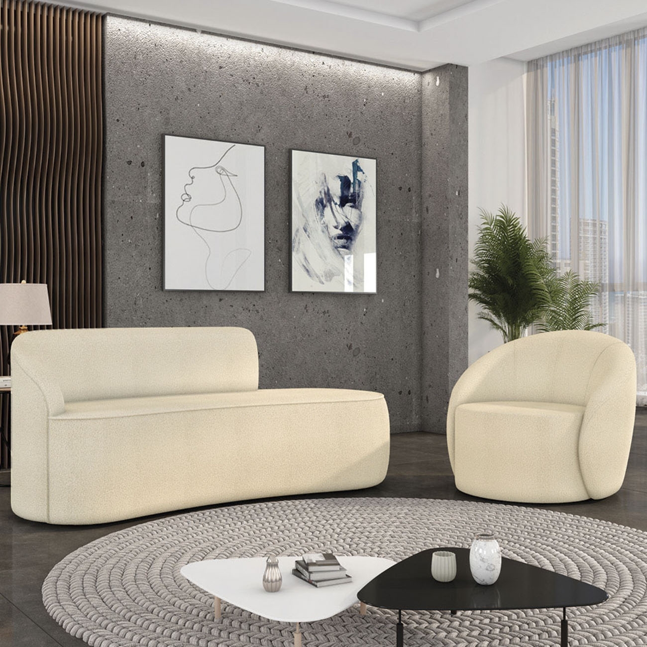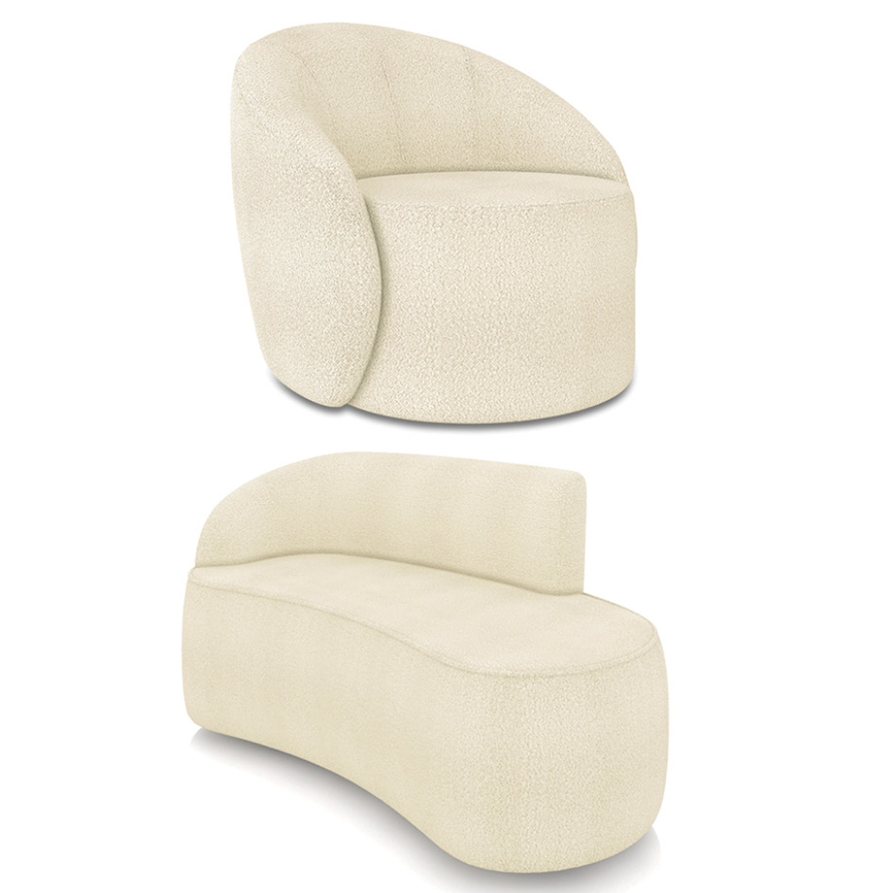 Sofá 2 Lugares 140cm Wendi e Poltrona Steve Boucle Bege I01 - Mpozenato