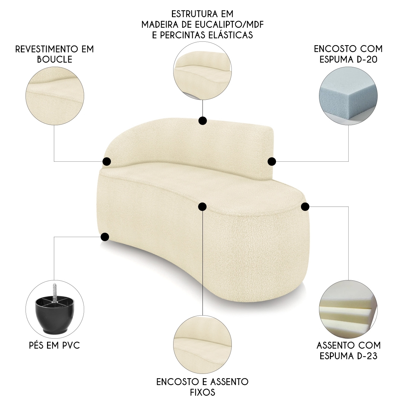 O revestimento em boucle adiciona textura elegante e toque macio, trazendo modernidade sem abrir mão do conforto. Ideal para quem valoriza Estilo Natural e Sofá Estilo Orgânico.