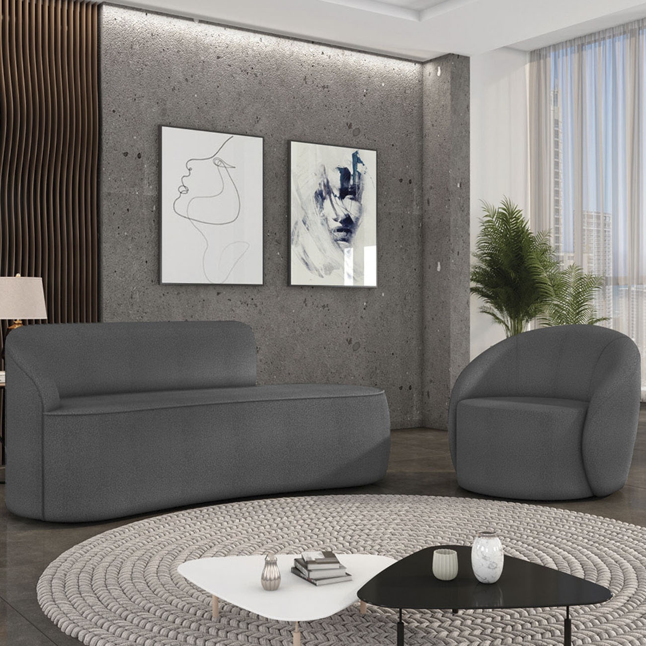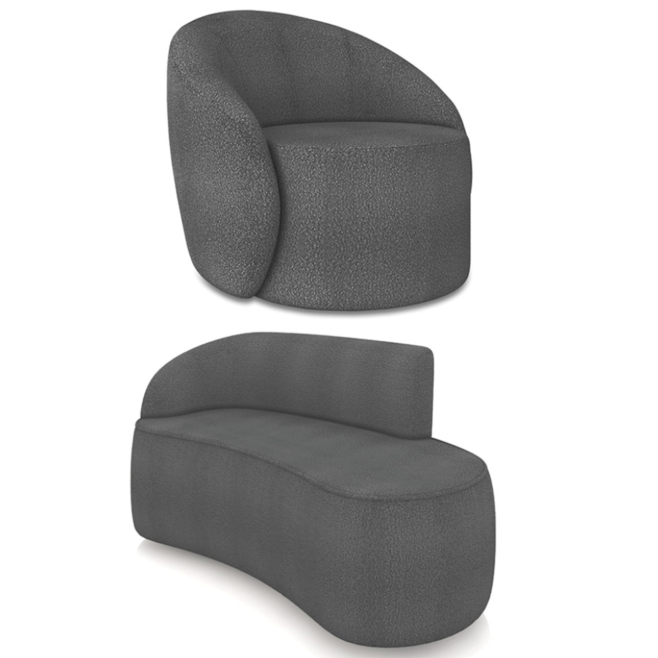 Sofá 2 Lugares 140cm Wendi e Poltrona Steve Boucle Grafite I01 - Mpozenato